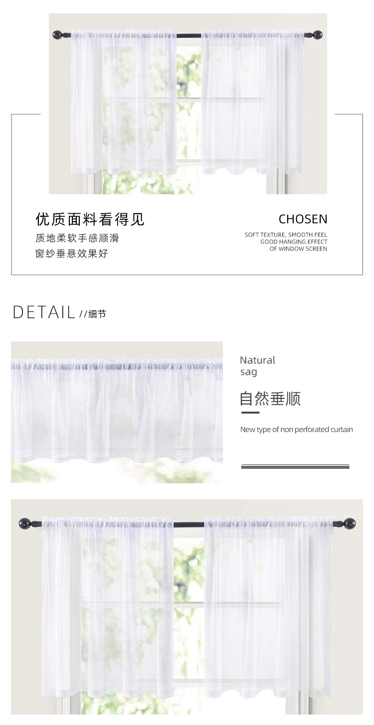 아마존 더블 스트링 트릴론 짧은 커튼 창 스크린 로드 프레스 와이어 주방 욕실 반 차광 완제품 커튼 재고 있음스토어 가기