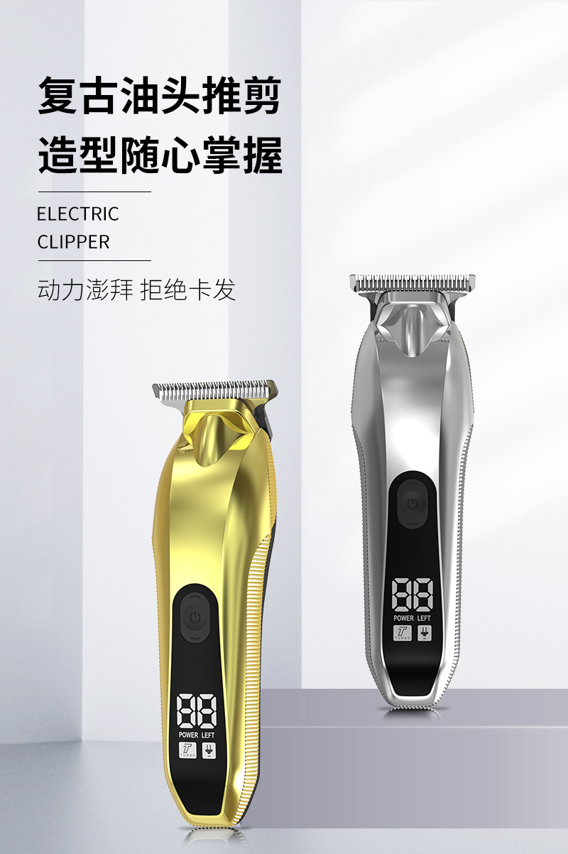 국경을 넘는 인기 레트로 스타일 오일헤드 조각 전기 이발기 미용실 전용 디지털 디스플레이 이발기 충전식 이발기 도매