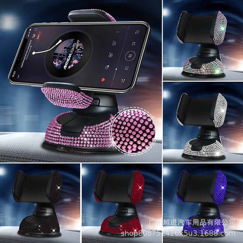 烫钻镶钻车载手机支架双功能出风口导航支架车用吸盘旋转手机架女