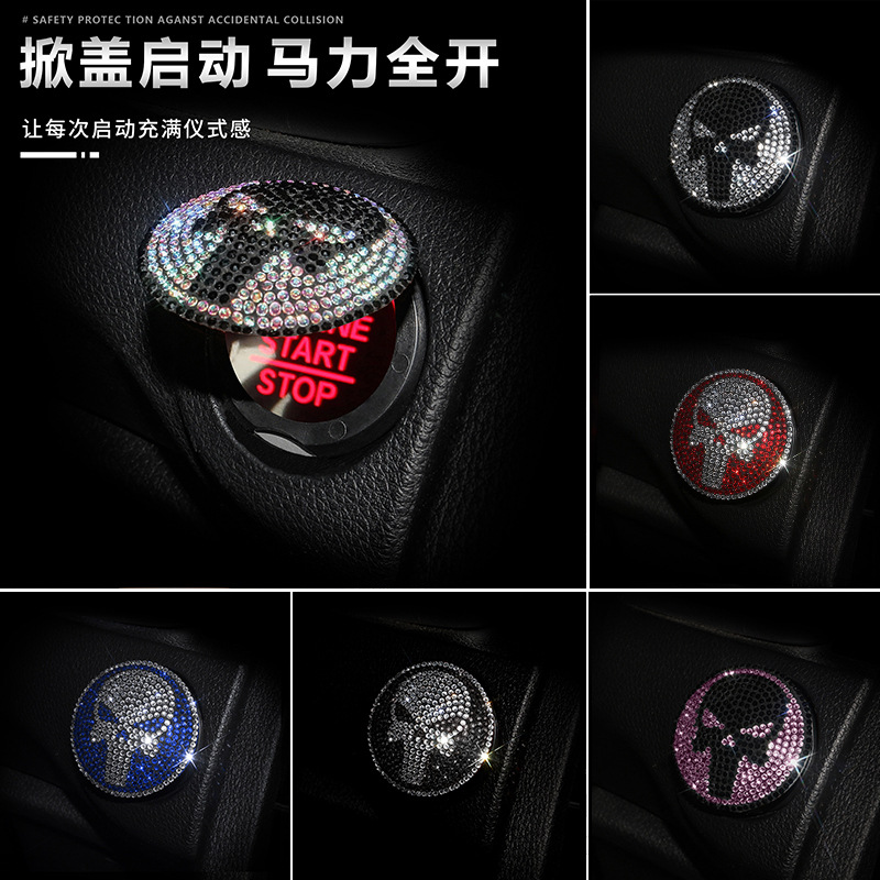 镶钻汽车一键启动装饰盖惩罚者汽车内饰改装配件汽车启动保护盖贴