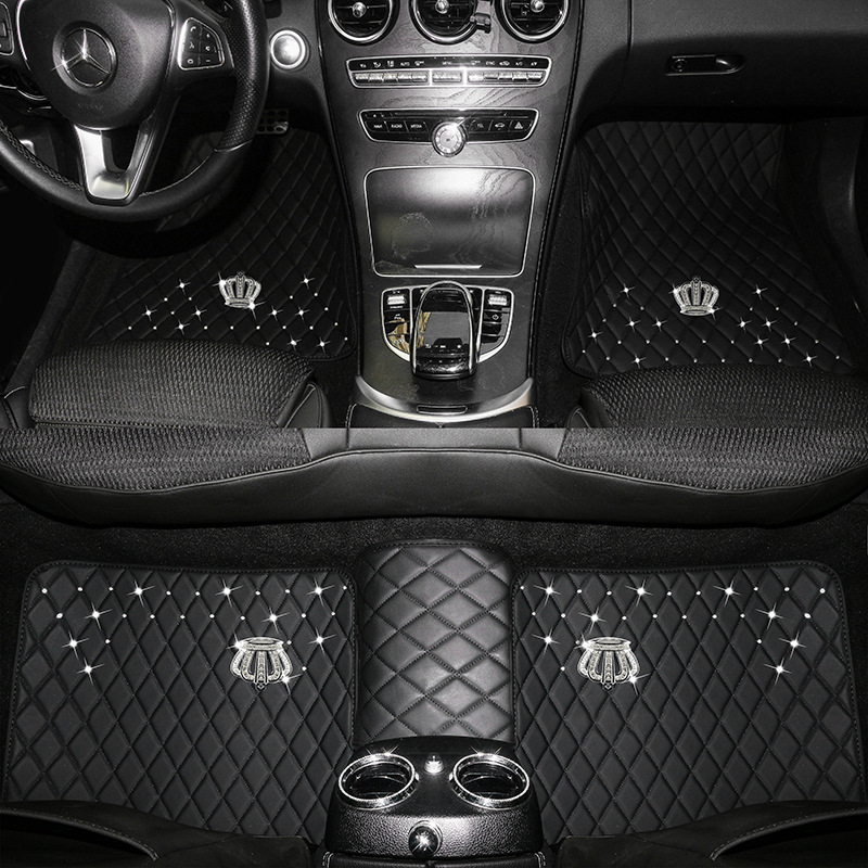 汽车脚垫天鹅镶钻皮革通用汽车地垫防水易清洁男女通用脚垫可水洗