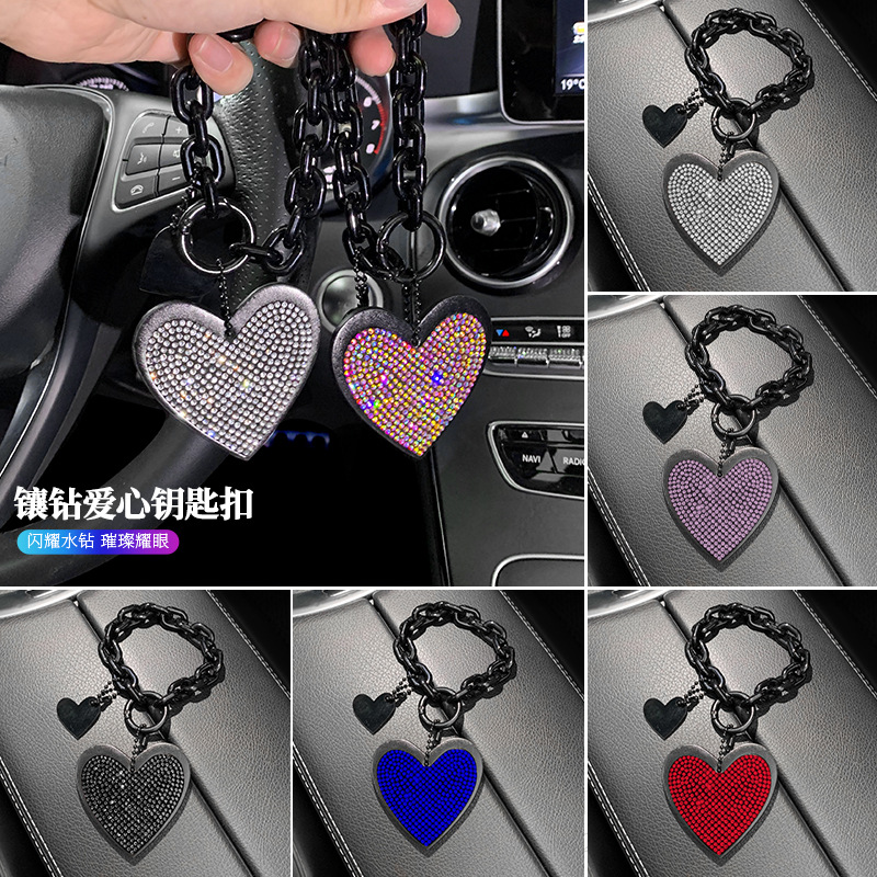 新款创意镶钻爱心汽车钥匙扣挂件超纤皮马蹄扣配件批发汽车配件