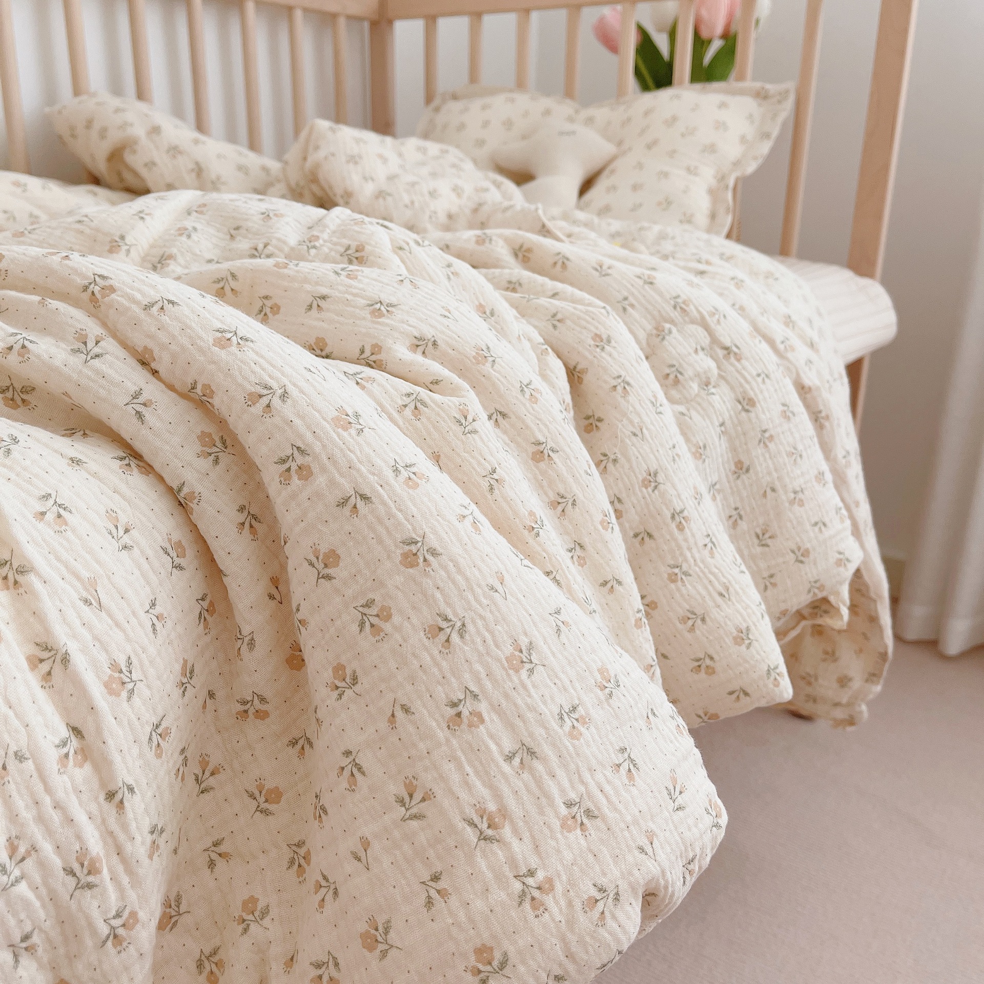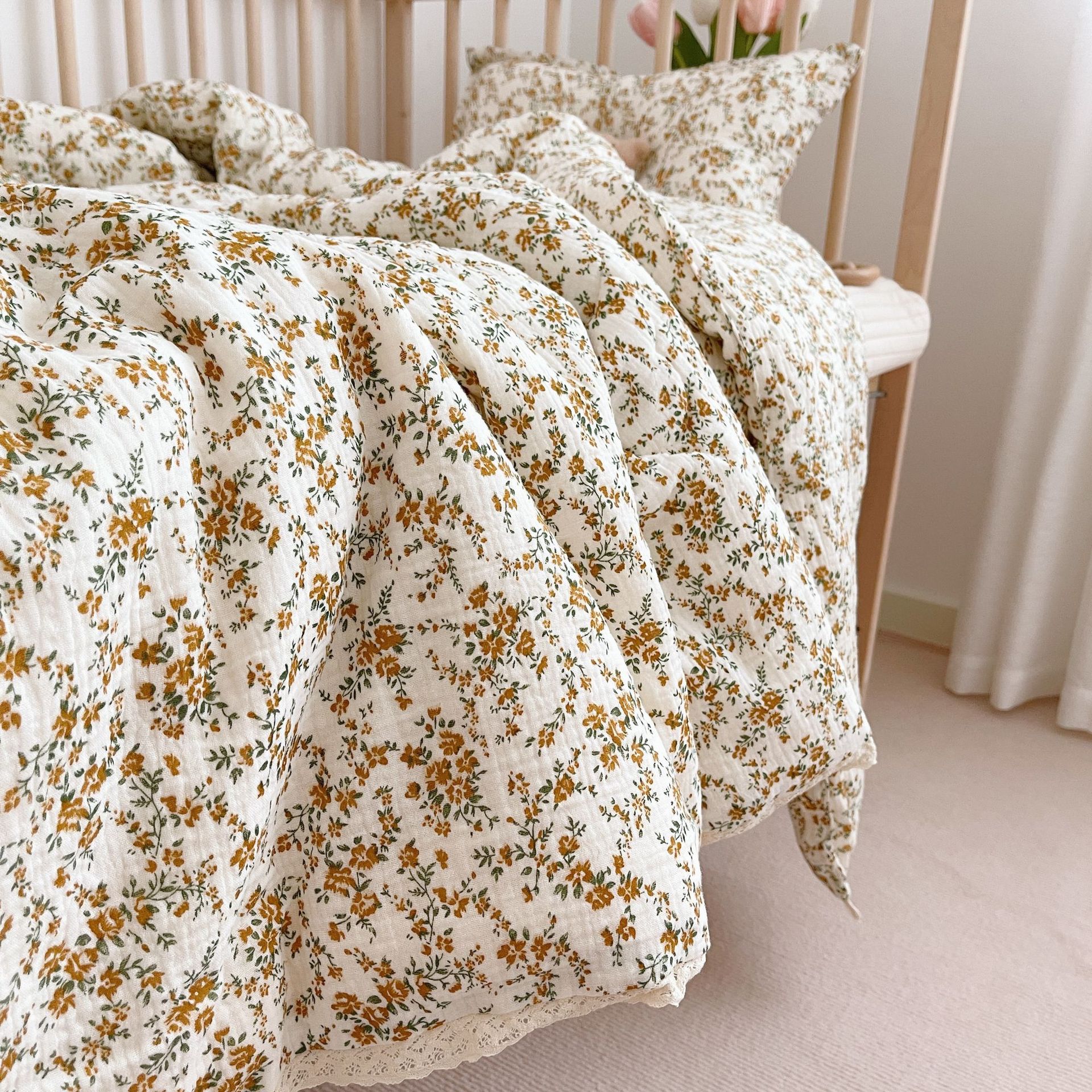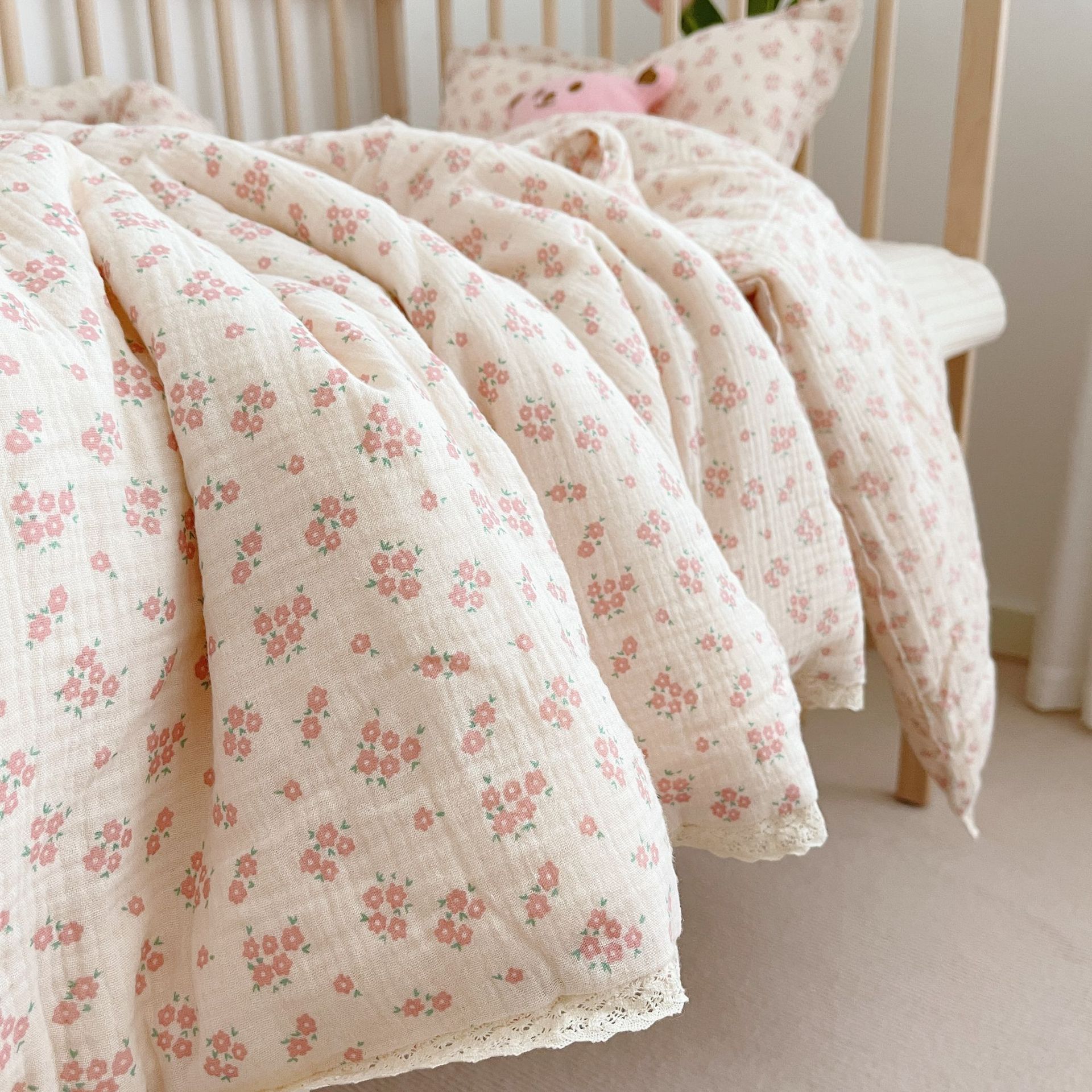 한국 인 꽃 신생아 어린이 이불 코어 봄과 가을 이불 더블 거즈 유치원 두꺼운 단일 콩 겨울 이불