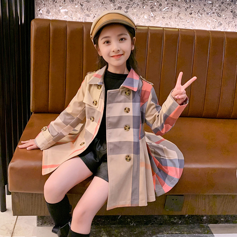 8110 더블 버튼 체크무늬 윈드브레이커 영국 스타일 브랜드 긴팔 트렌디한 한국 스타일스토어 가기