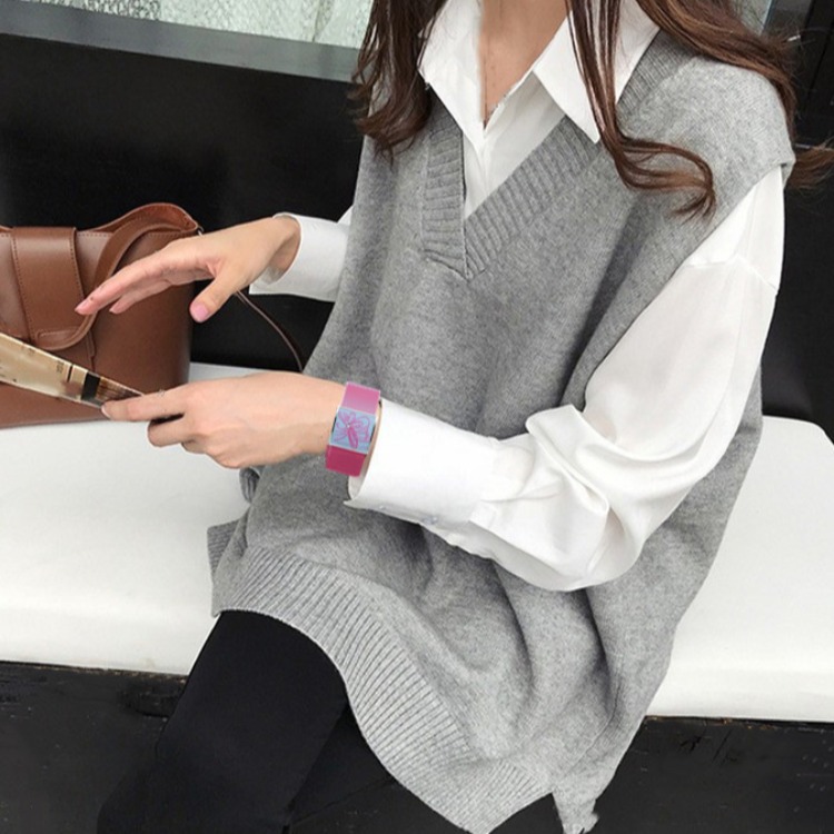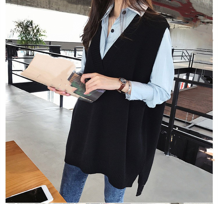 V-넥 스웨터 조끼 여성용 한국식 민소매 니트 조끼 심플한 대학 스타일의 루즈한 겉옷 착용 세련된 조끼스토어 가기