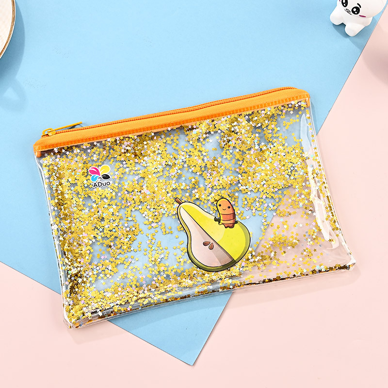 공장 도매 PVC 퀵샌드 필통 귀여운 인쇄 반투명 지퍼 대용량 보관 가방