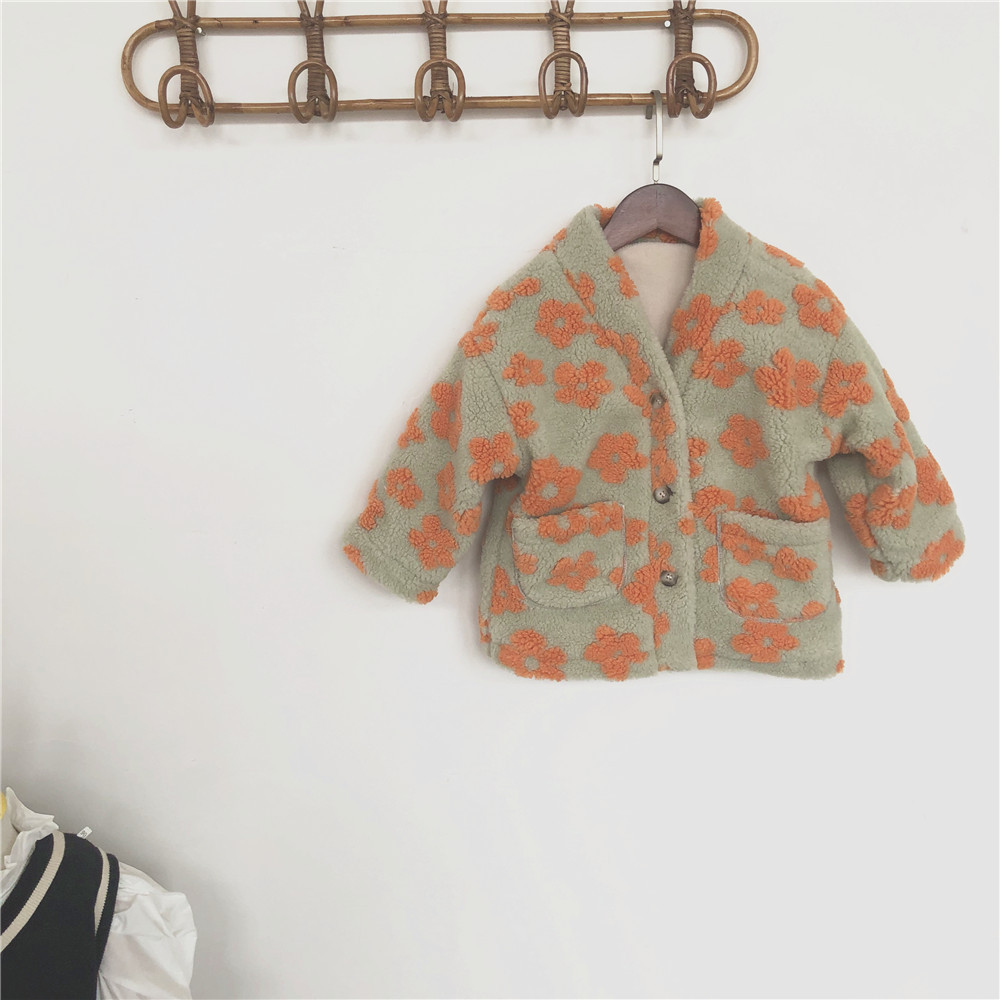 여아 모피 코트 2024 가을 겨울 한국 아동복 베이비 라운드 넥 모피 스웨터 입체 꽃 벨벳 코트스토어 가기