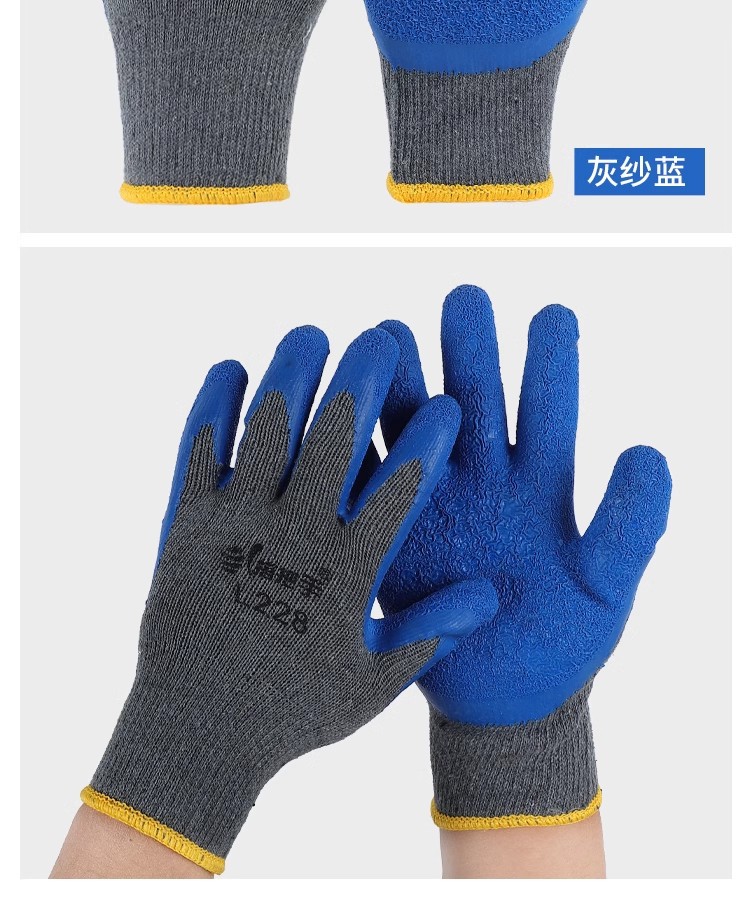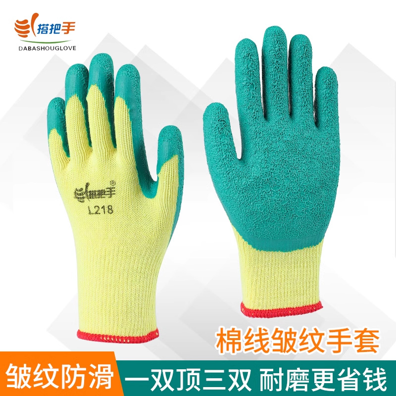 핸들 L218 노란색 원사 녹색 주름 노동 보호 장갑 두꺼운 내마모성 미끄럼 방지 작업 보호 고무 통기성 면사스토어 가기