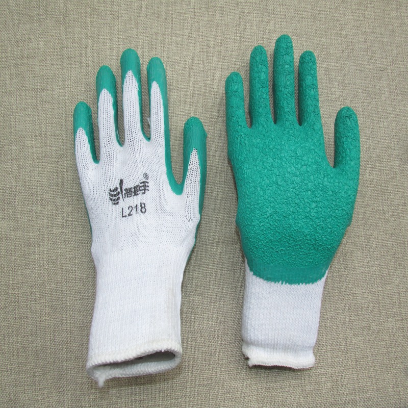핸들 L218 노란색 원사 녹색 주름 노동 보호 장갑 두꺼운 내마모성 미끄럼 방지 작업 보호 고무 통기성 면사