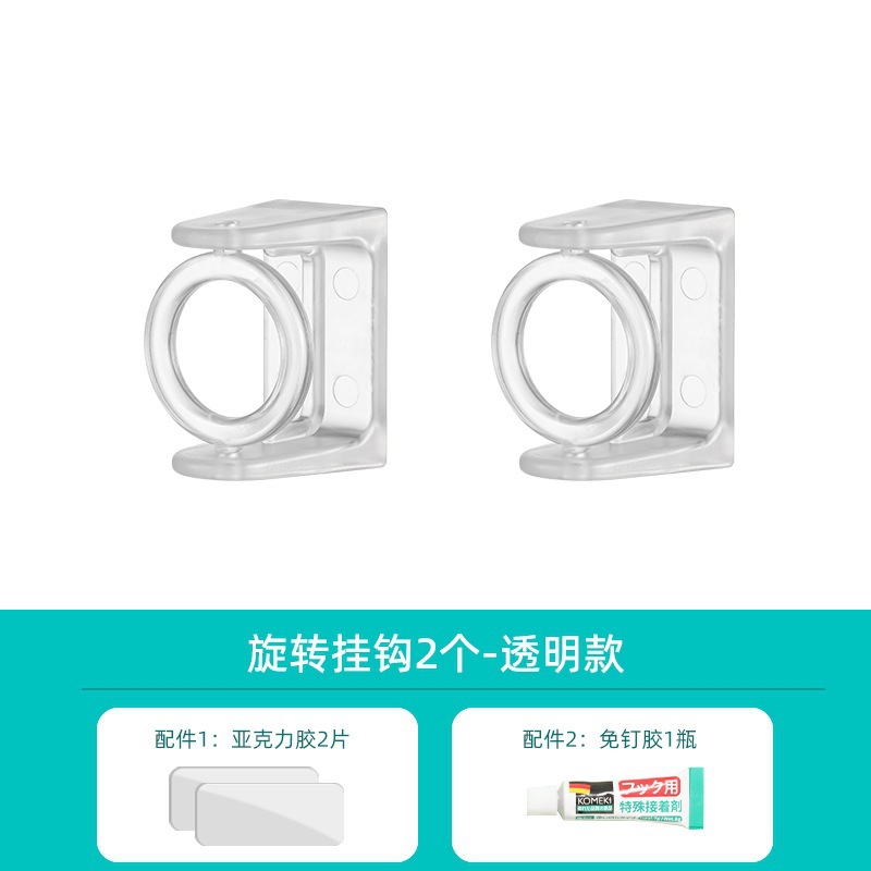 • 회전 걸이 링 - 투명 - 못이 없는 접착제 포함