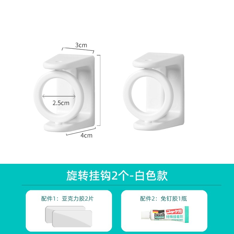 • 회전 걸이 링 - 흰색 - 못이 없는 접착제 포함