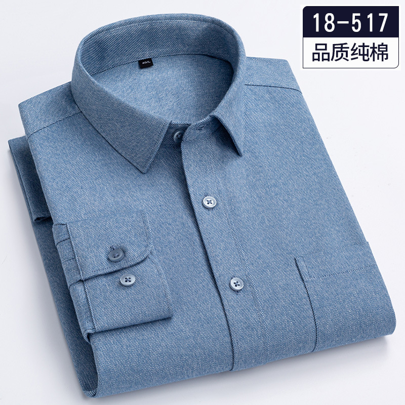 엄선된 가을 신상 순면 색사 단색 셔츠 남성 긴팔 상의 비즈니스 중년 및 청년 셔츠 남성복스토어 가기