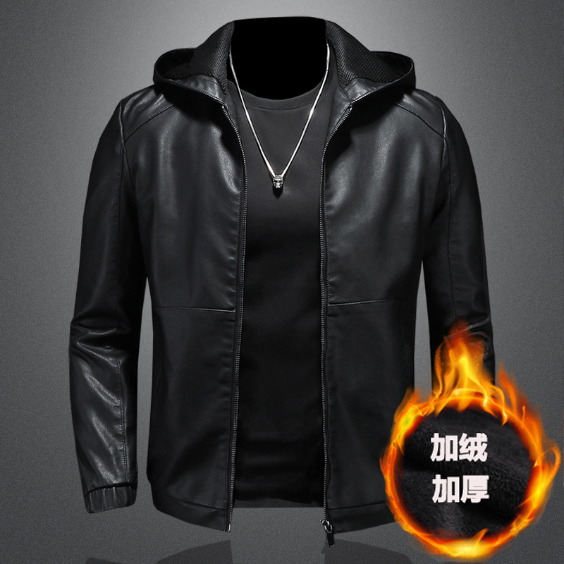 가죽 자켓 남성용 가을 겨울 2026 신상 캐주얼 후드 자켓 멋진 바이커 자켓 블랙 슬림핏 남성 아우터