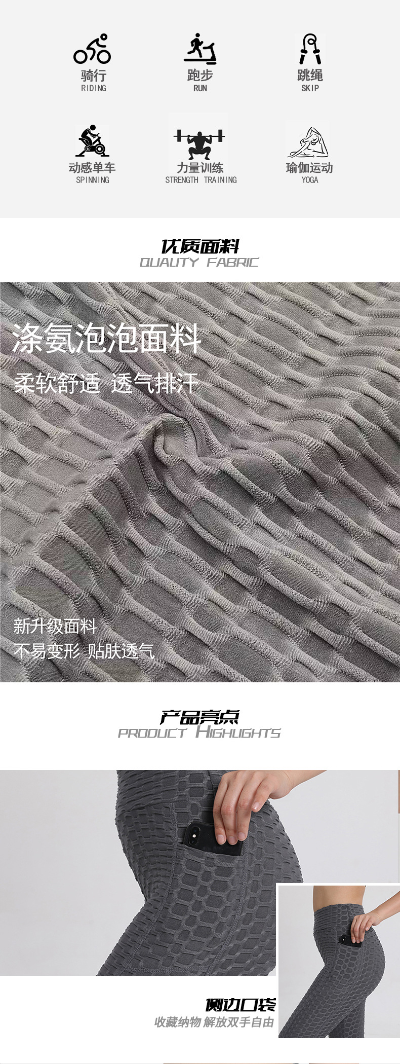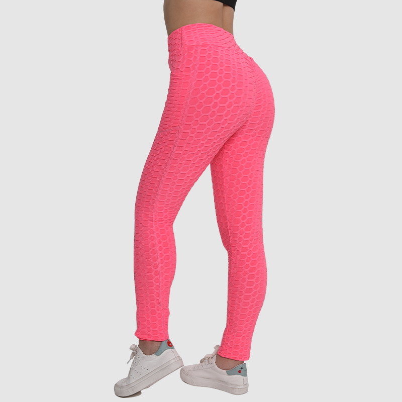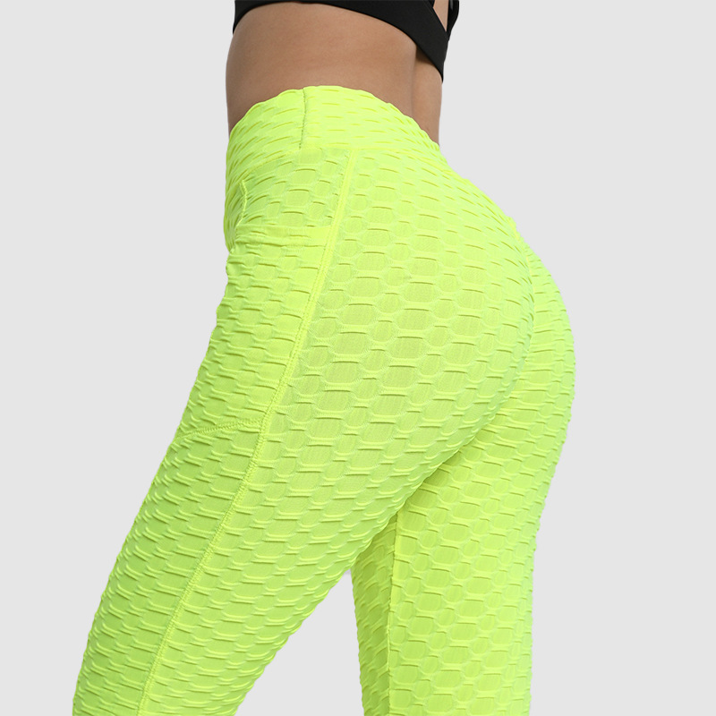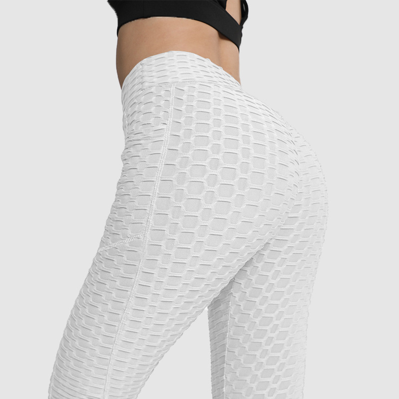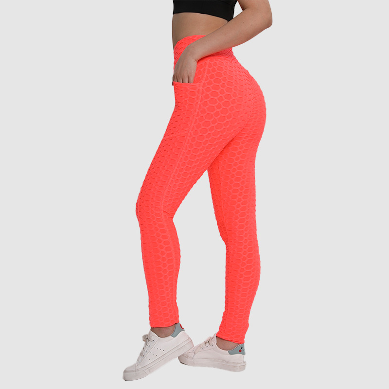 아마존 유럽과 미국 스타킹 복숭아 피트니스 바지 하이 웨이스트 힙 레깅스 포켓 자카드 버블 요가 바지