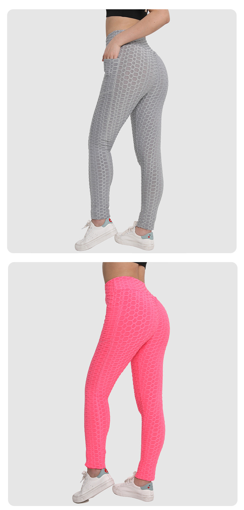 아마존 유럽과 미국 스타킹 복숭아 피트니스 바지 하이 웨이스트 힙 레깅스 포켓 자카드 버블 요가 바지스토어 가기