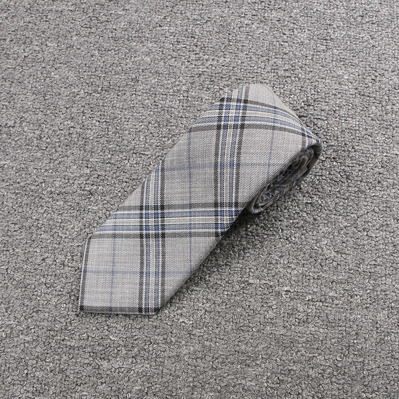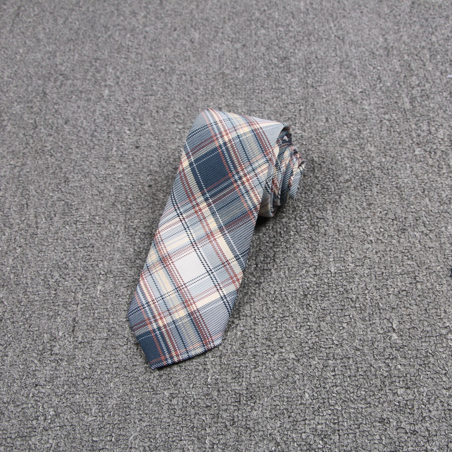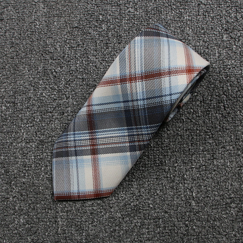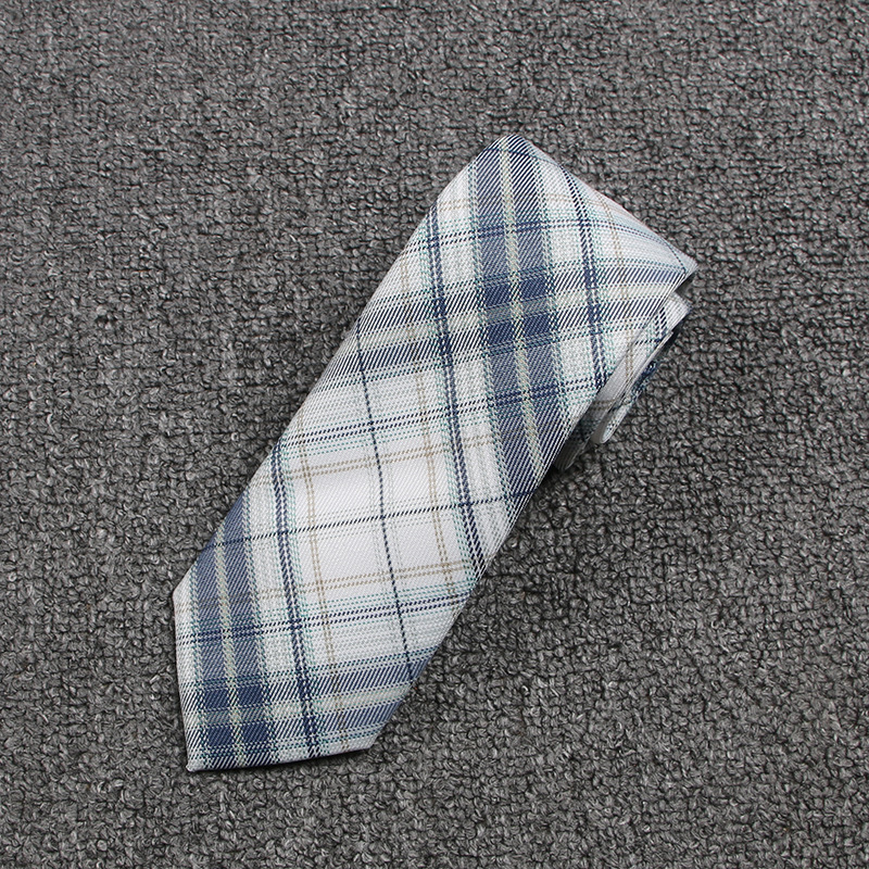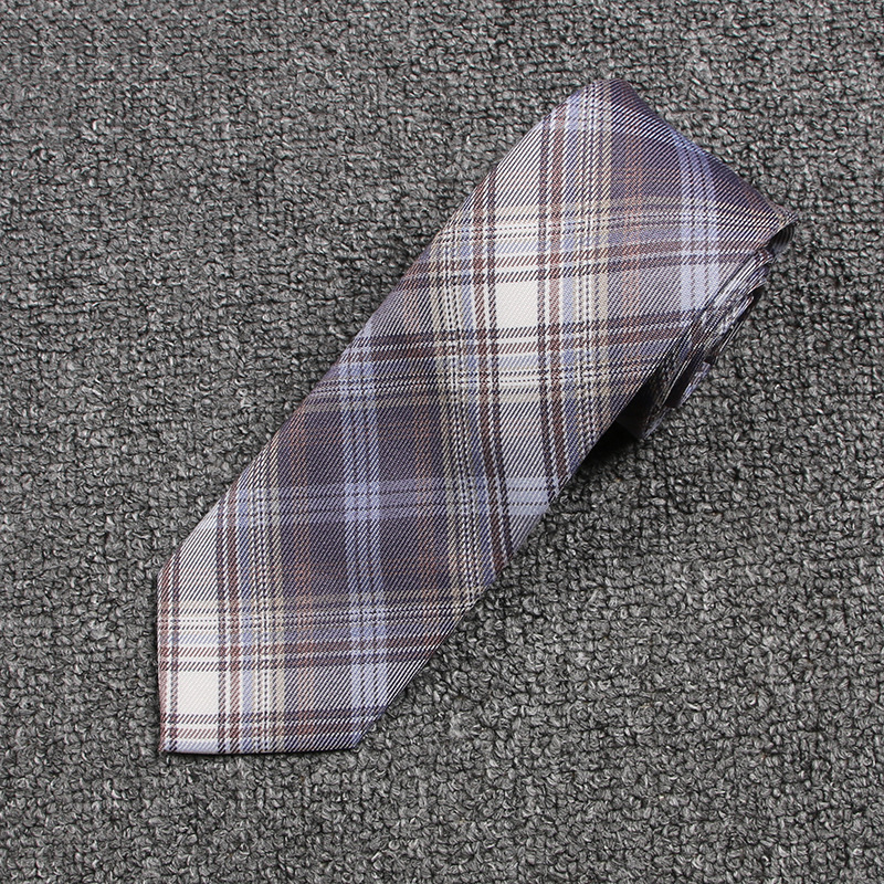 • 그레이, 블루, 브라운, 화이트 체크무늬 넥타이