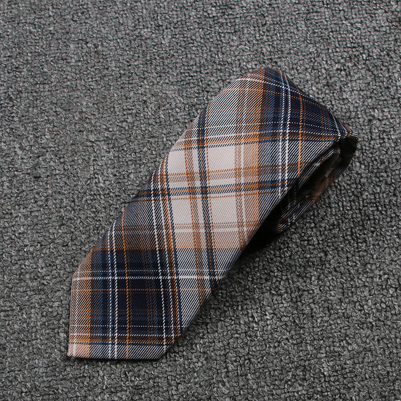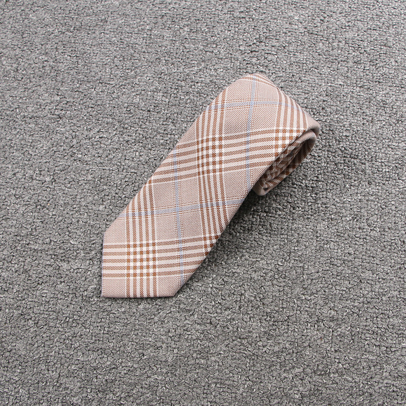 • 살구색과 검정색, 갈색 체크무늬 넥타이 (D)