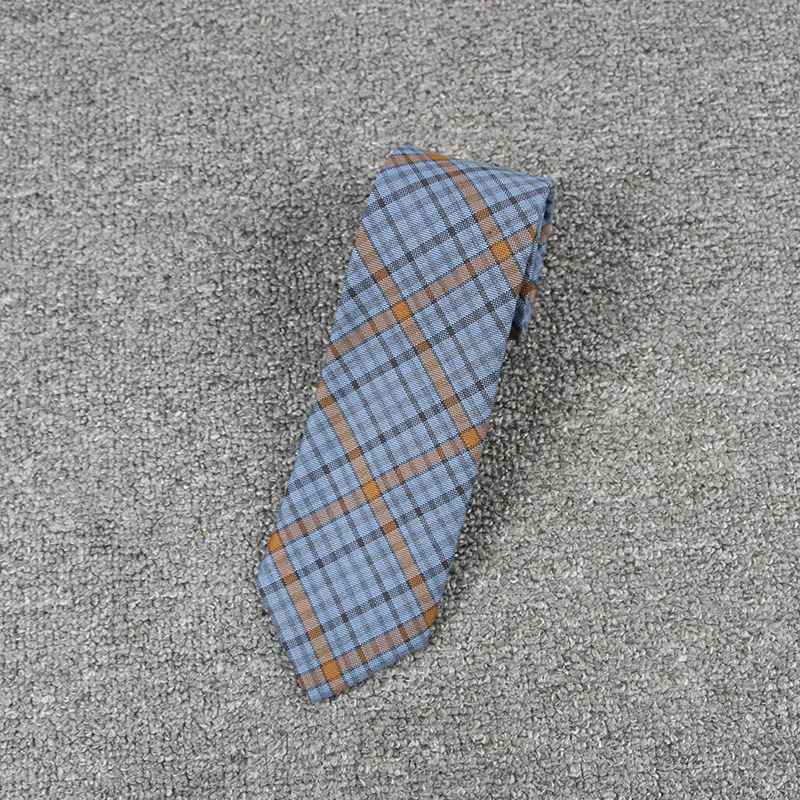 • 다크 그레이 블루와 오렌지 체크 타이 (D)