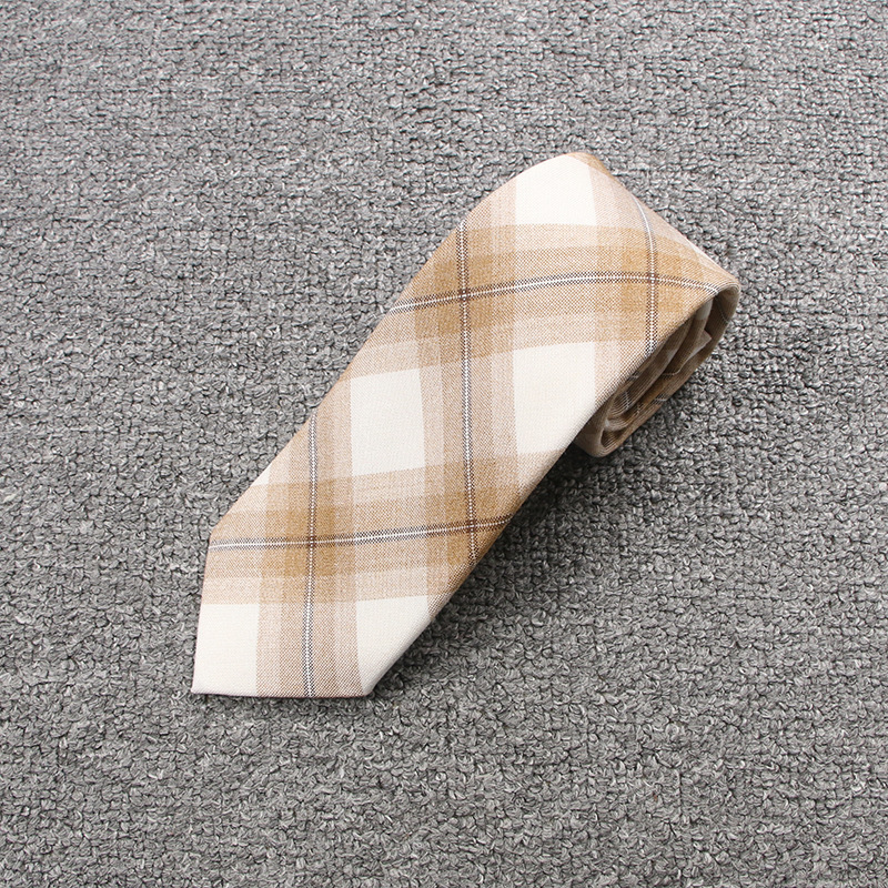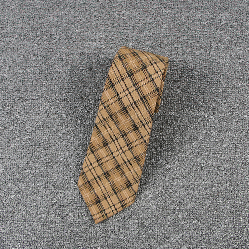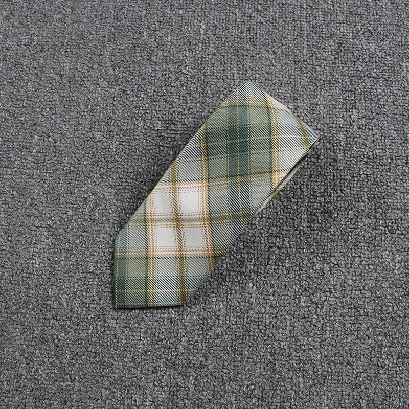 • 라이트옐로우카키블랙 체크무늬 넥타이(D)
