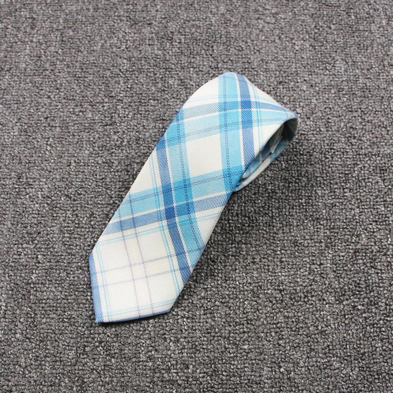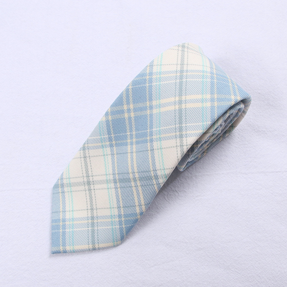 • 흰색과 파란색 살구 체크 넥타이 (D)