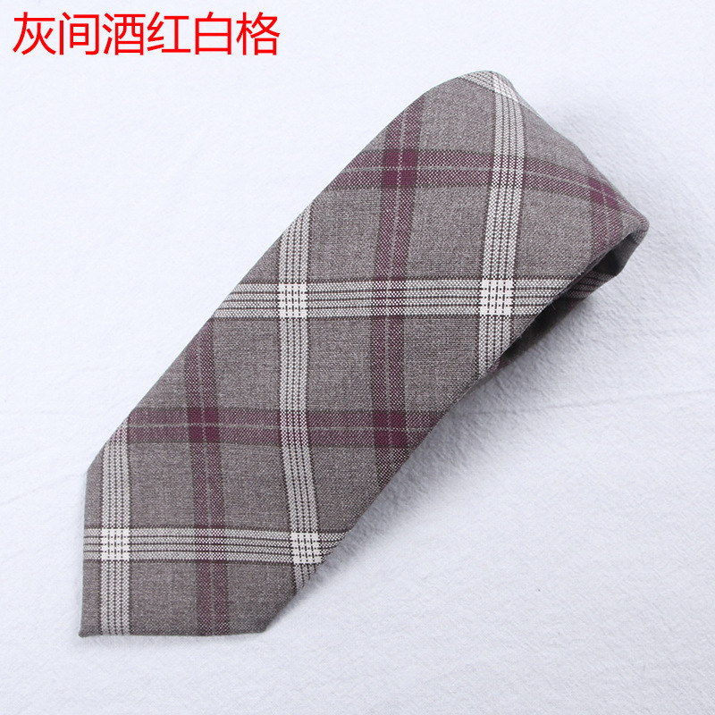 • 그레이와 버건디, 화이트 체크무늬 넥타이(D)