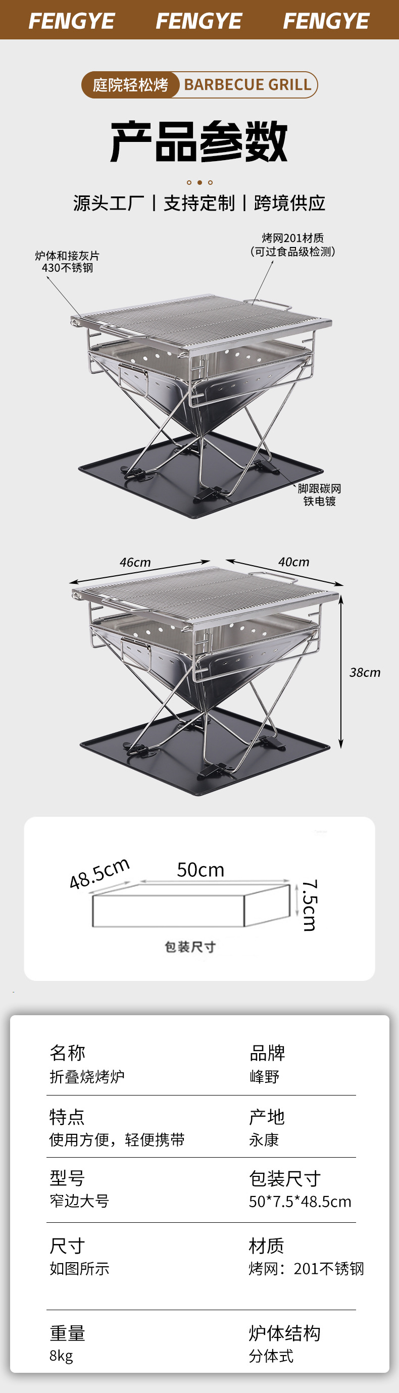 • 좁은 가장자리 바베큐 그릴 소형 42*35*34cm