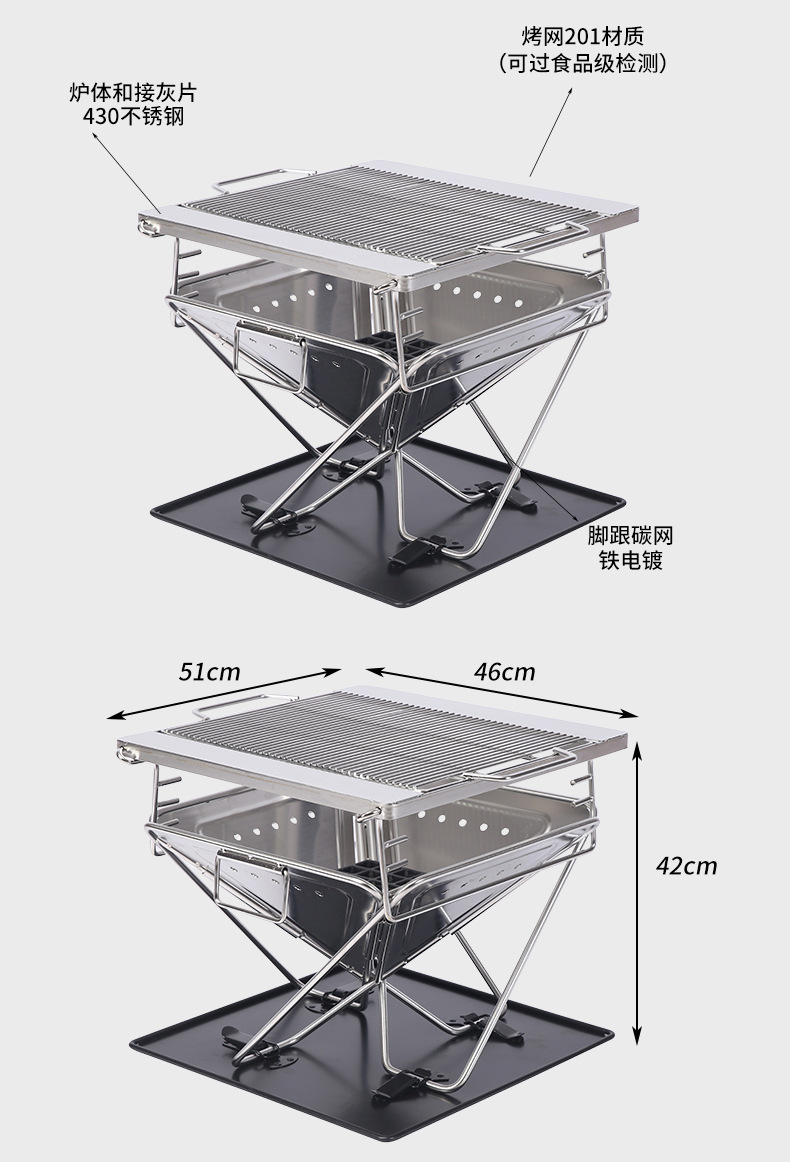 • 와이드 에지 접이식 바베큐 그릴 대형 51*46*42cm