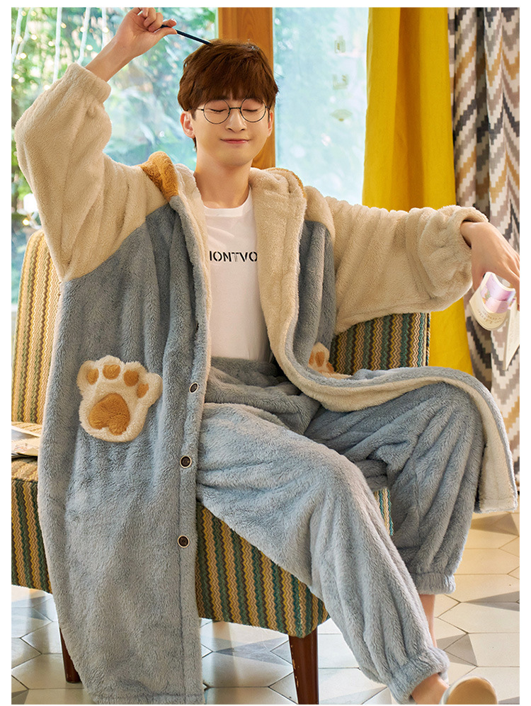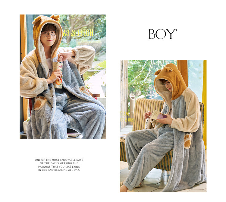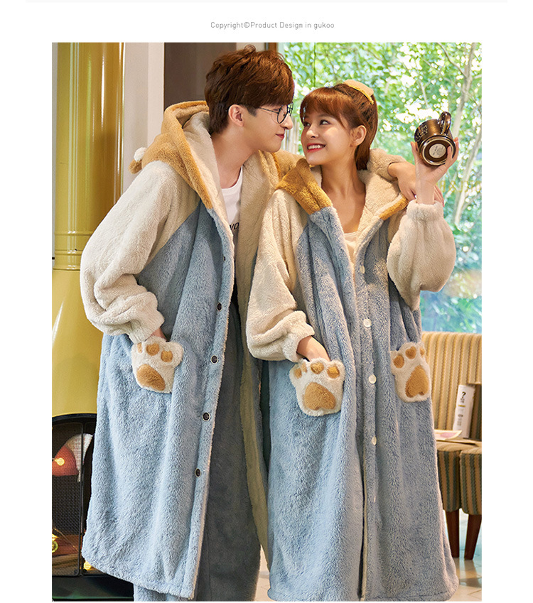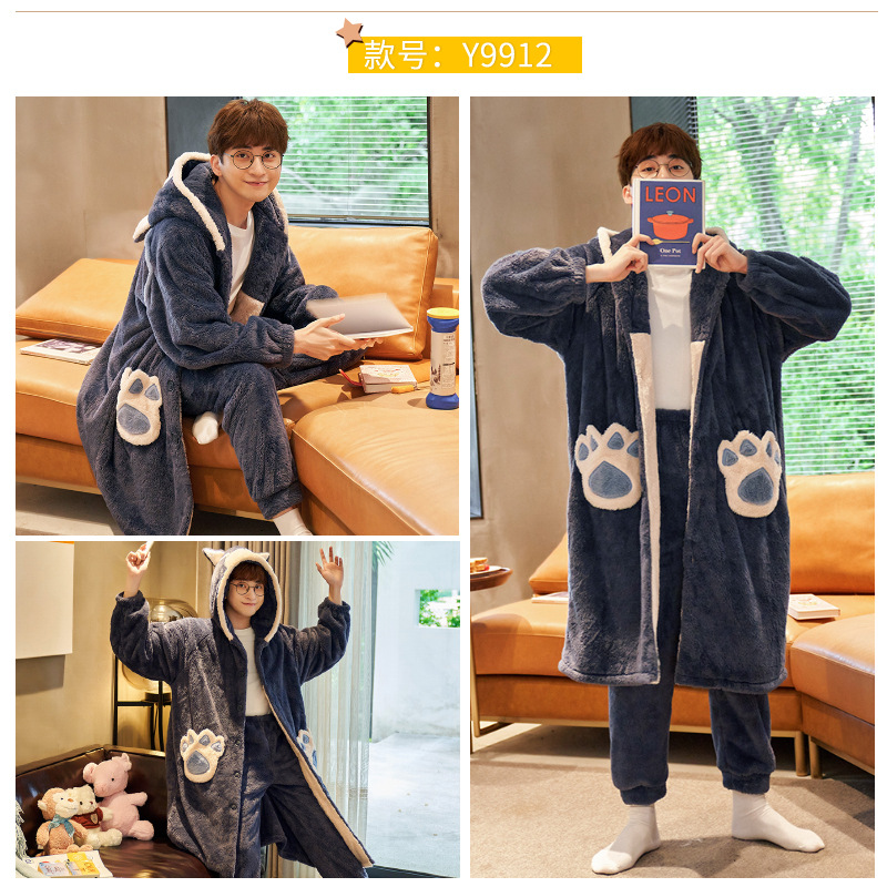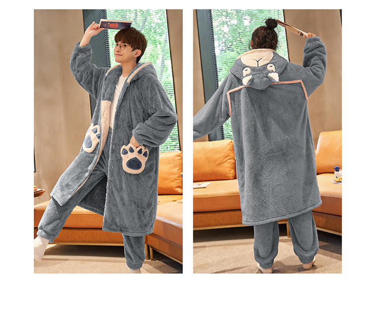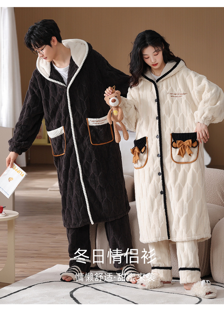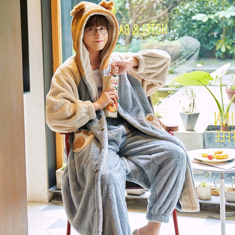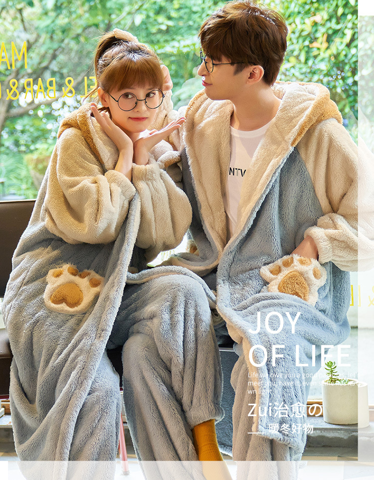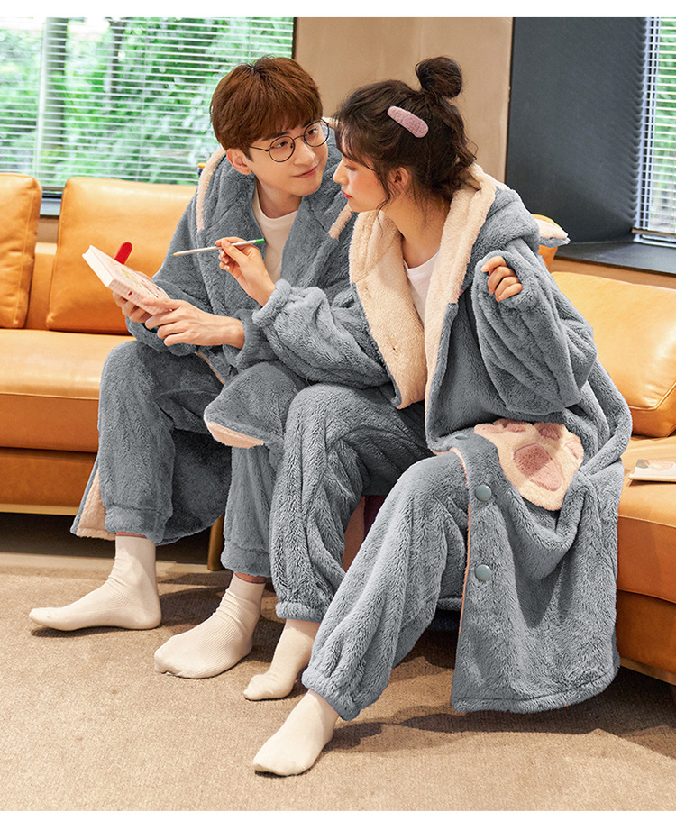 겨울 플란넬 커플 잠옷 여성용 긴 후드 가운 남성용 두꺼운 오버사이즈 외출복 홈웨어 세트스토어 가기