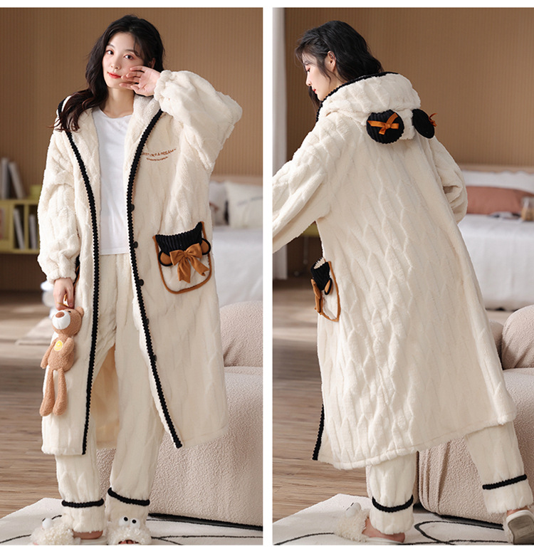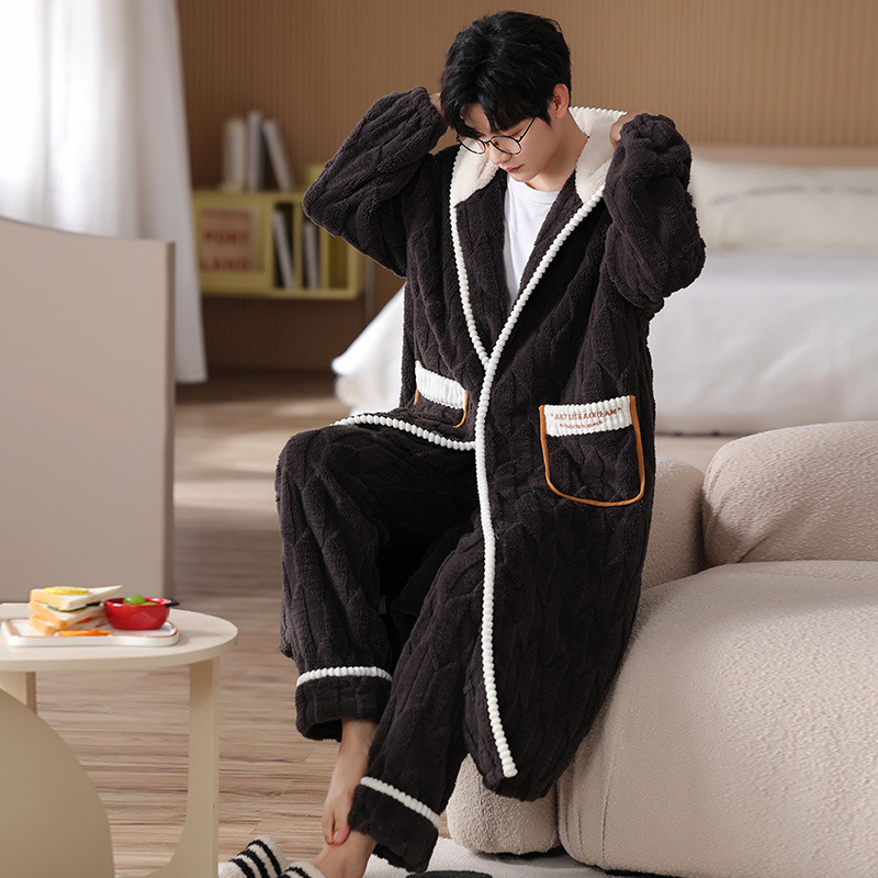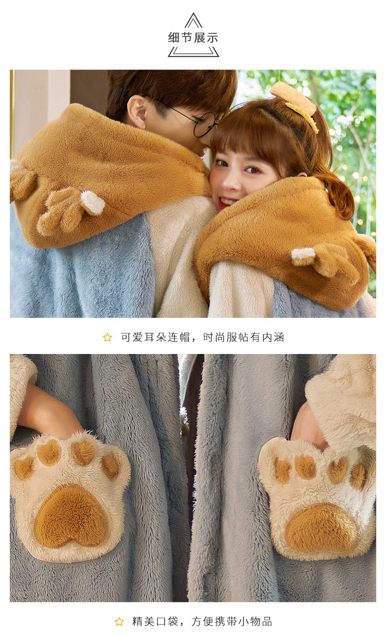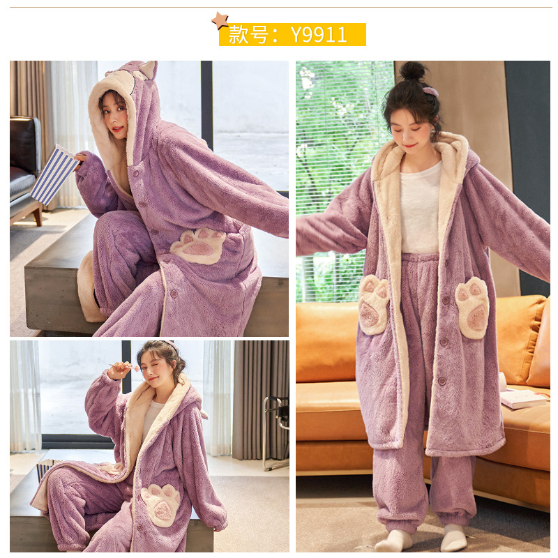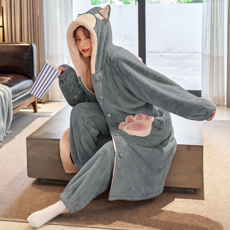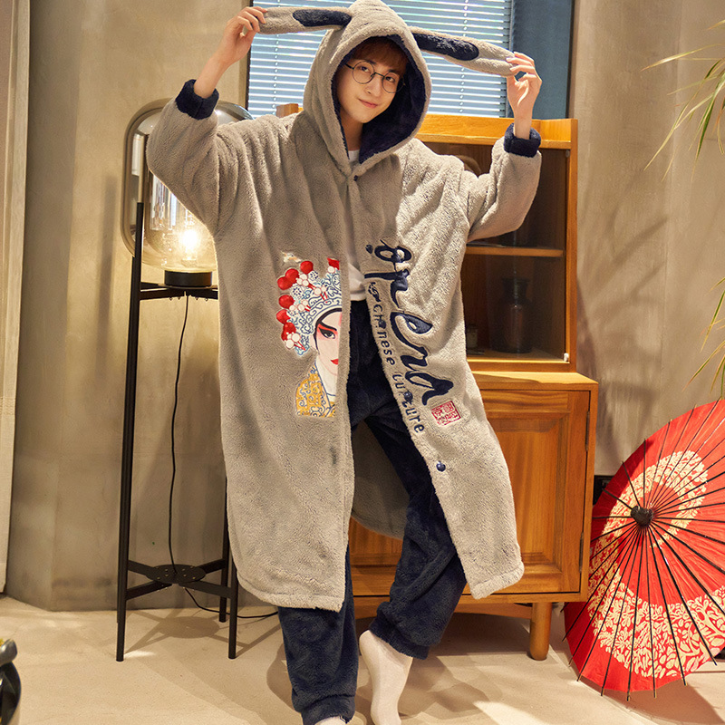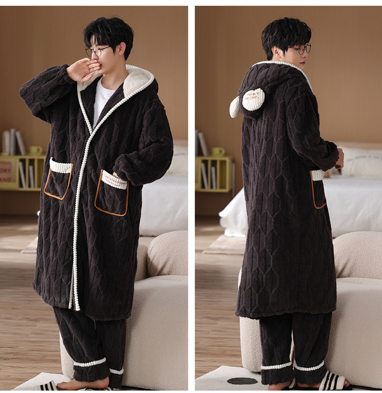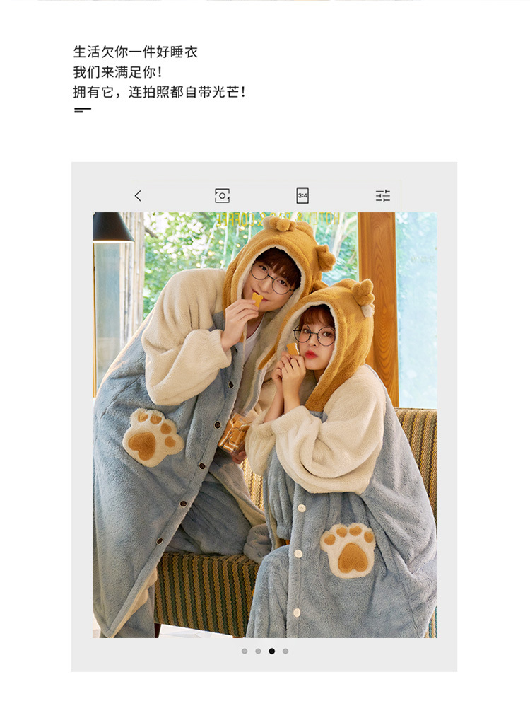 겨울 플란넬 커플 잠옷 여성용 긴 후드 가운 남성용 두꺼운 오버사이즈 외출복 홈웨어 세트스토어 가기