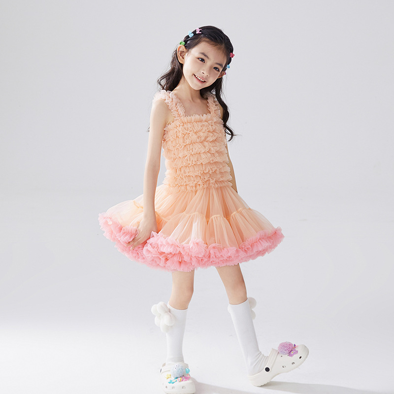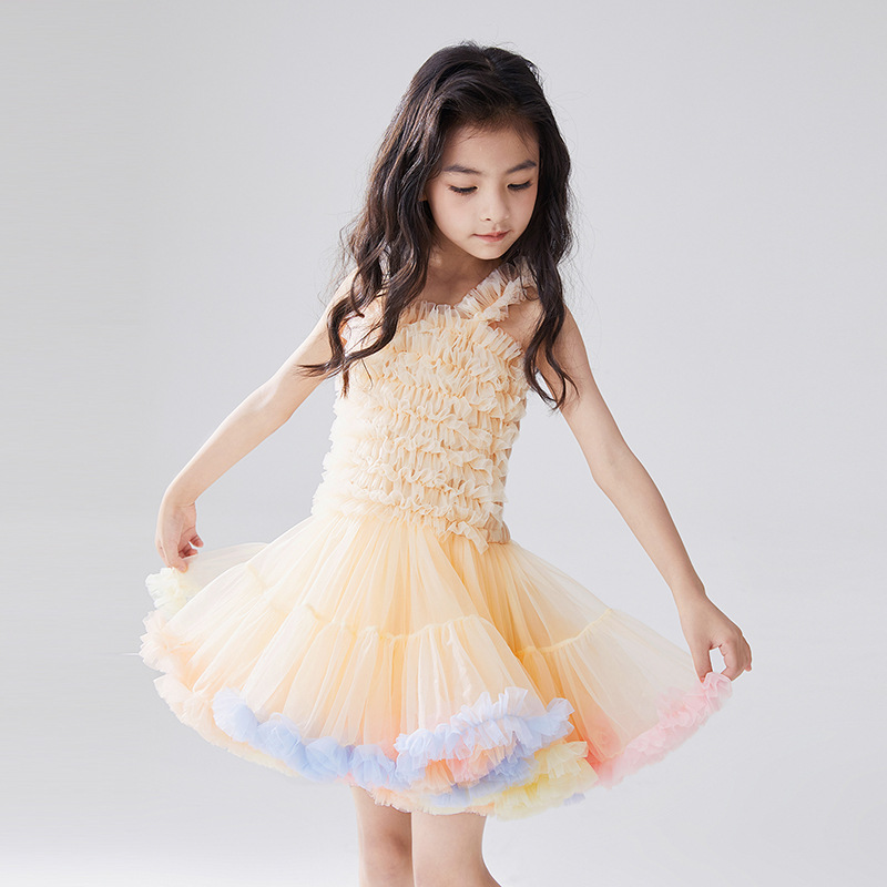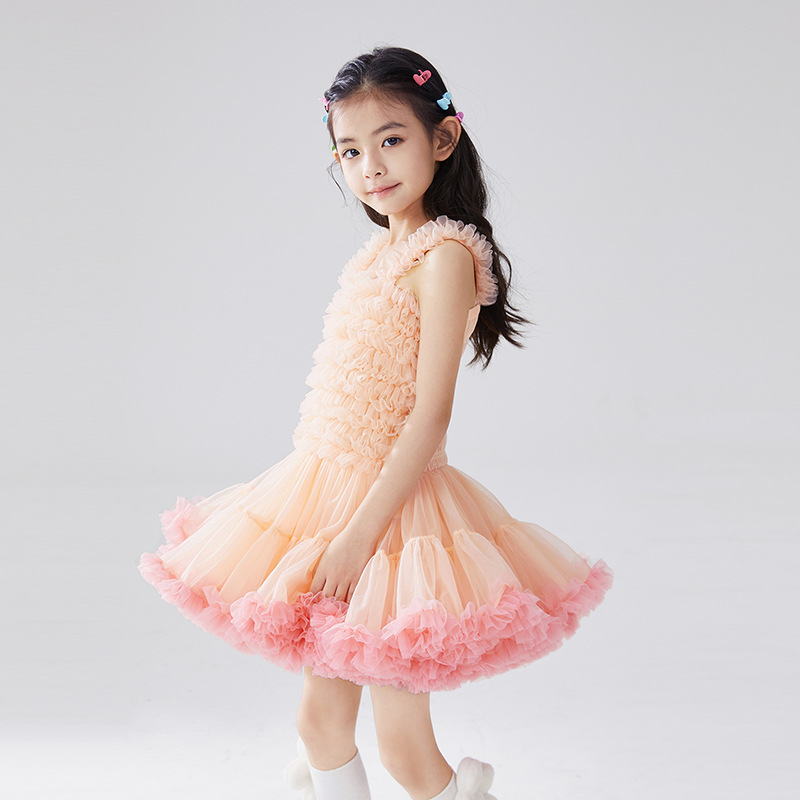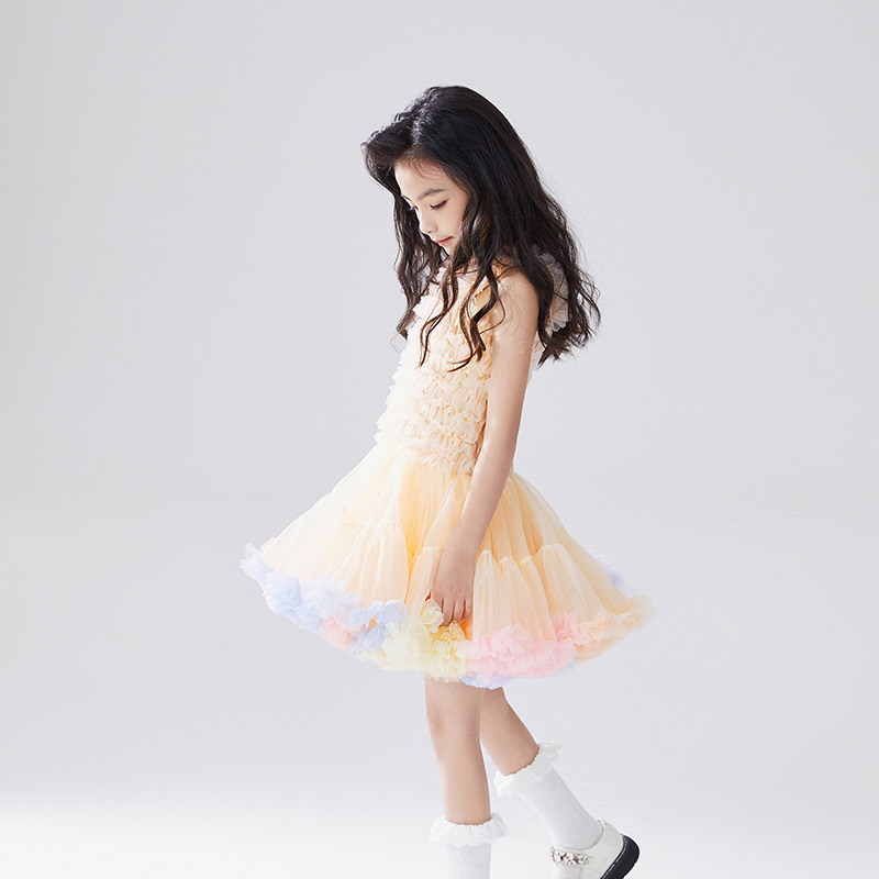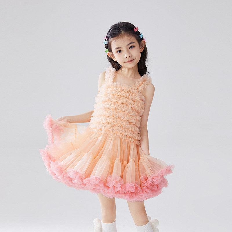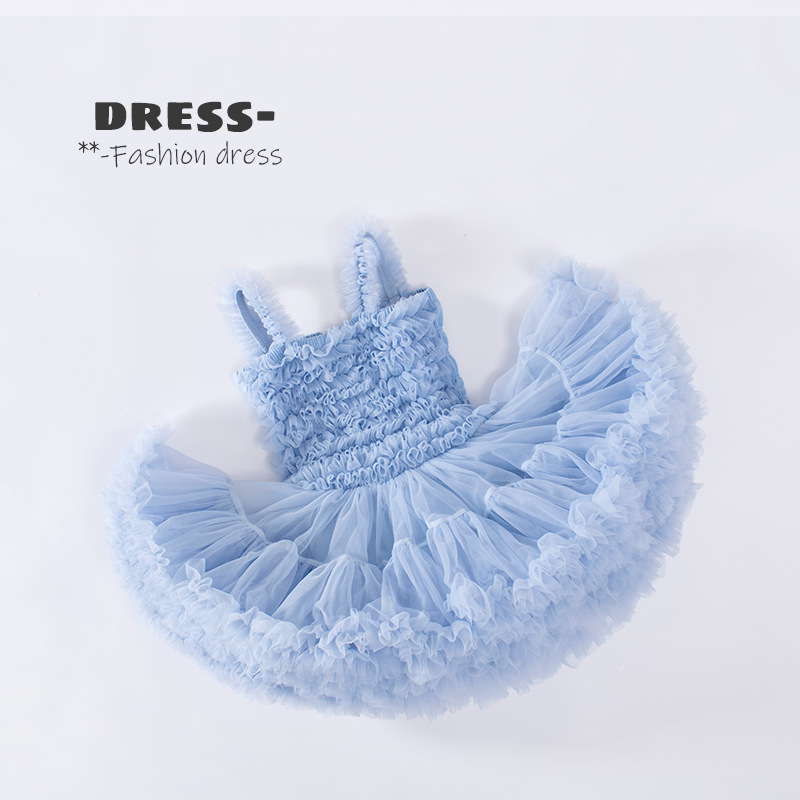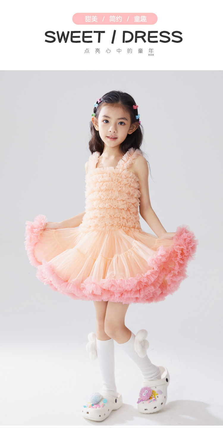 유럽과 미국 스타일 아동복, 공주님 스타일 튜튜 드레스, 여자아이 메쉬 원피스, 어린이날 퍼프 드레스