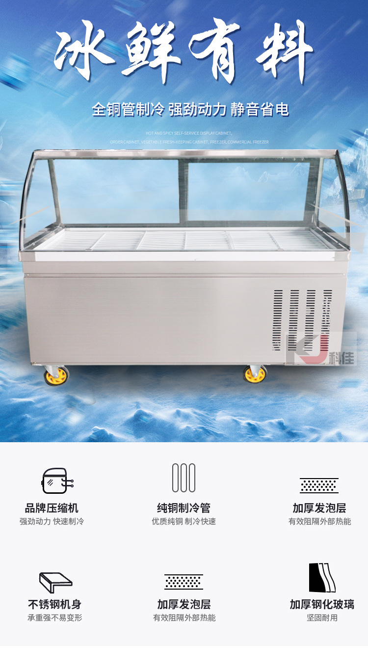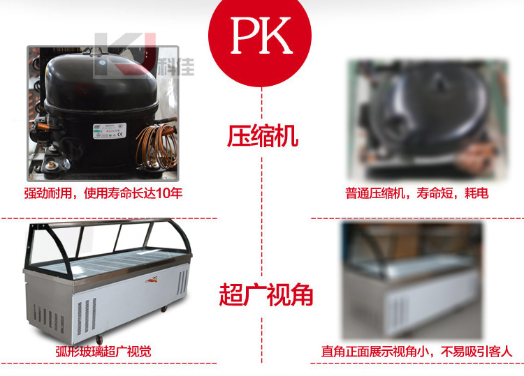 두 배 온도 신선한 유지 내각 조림 식품 냉장 신선한 스시 돼지 고기 차가운 요리 오리 목 요리 식품 냉동고 차가운 신선한 고기 디스플레이 캐비닛스토어 가기