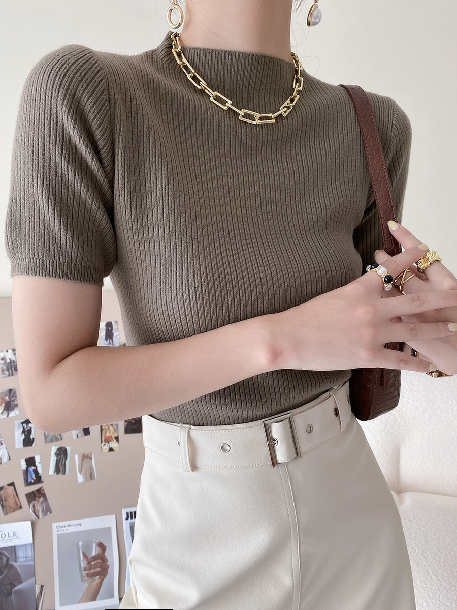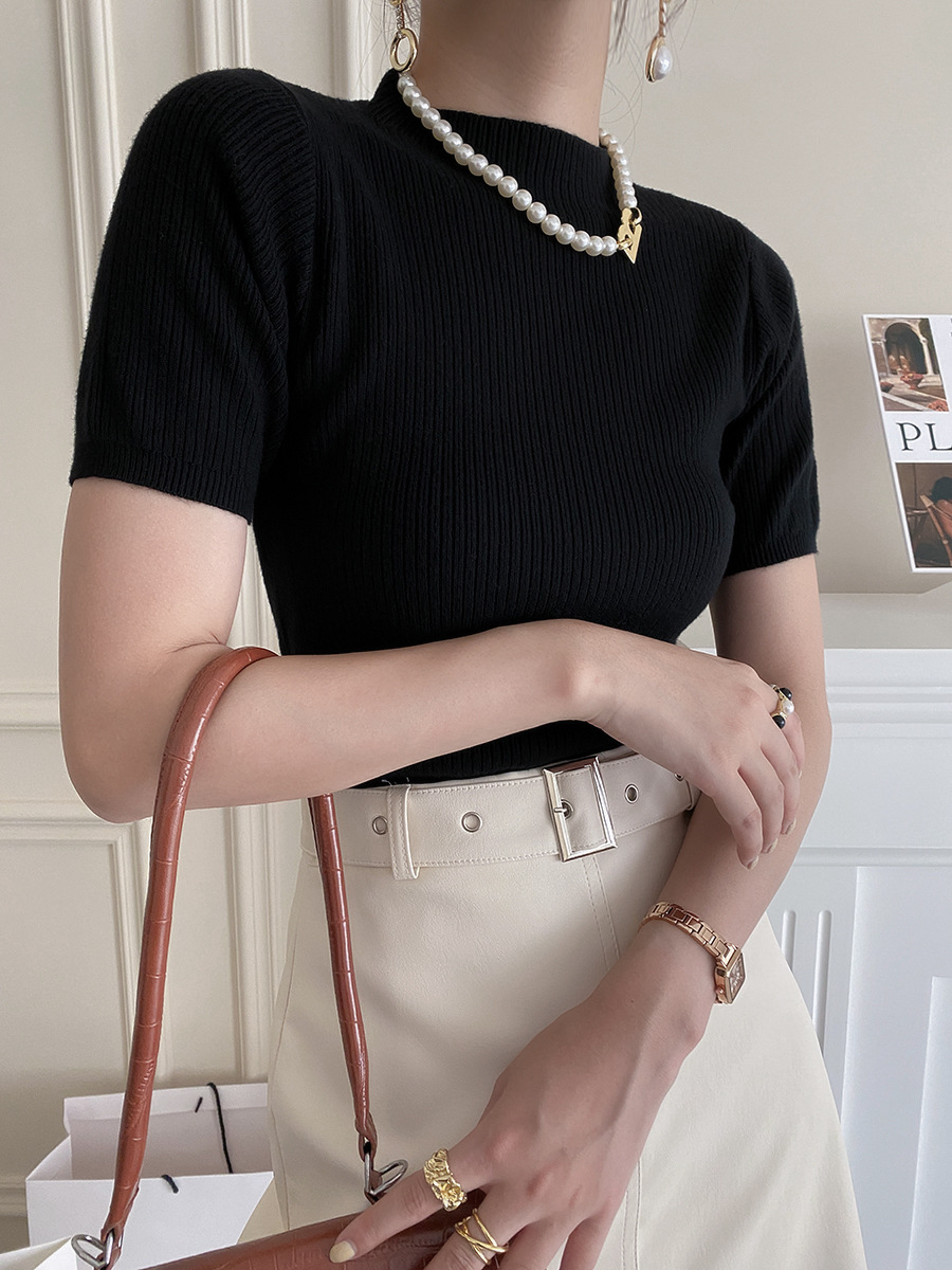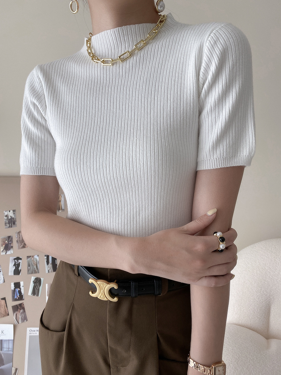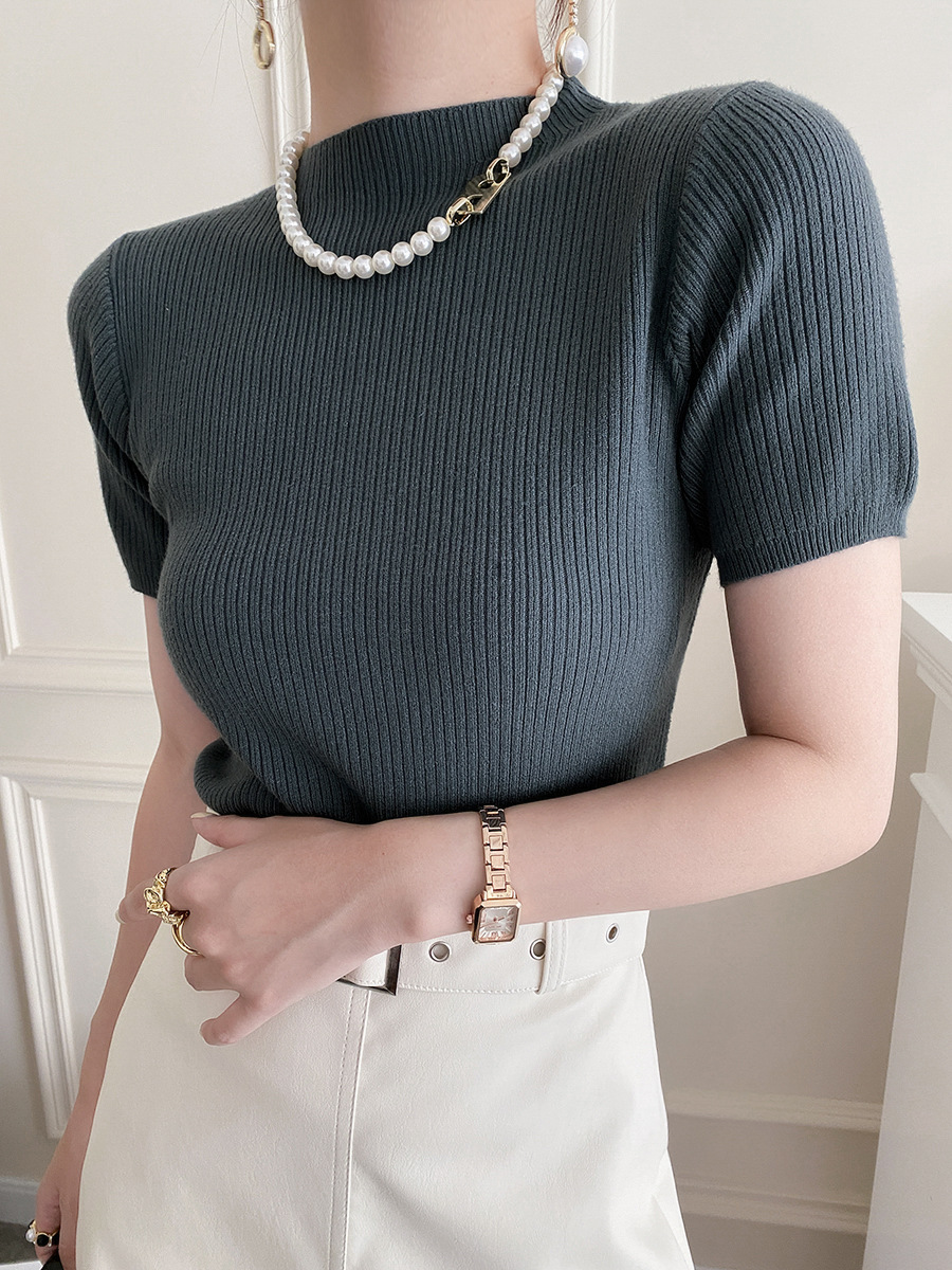 시난 기질 반하이넥 반팔 니트 여성용 2025 가을 겨울 신상 슬림핏 반팔 이너웨어 SN0535스토어 가기
