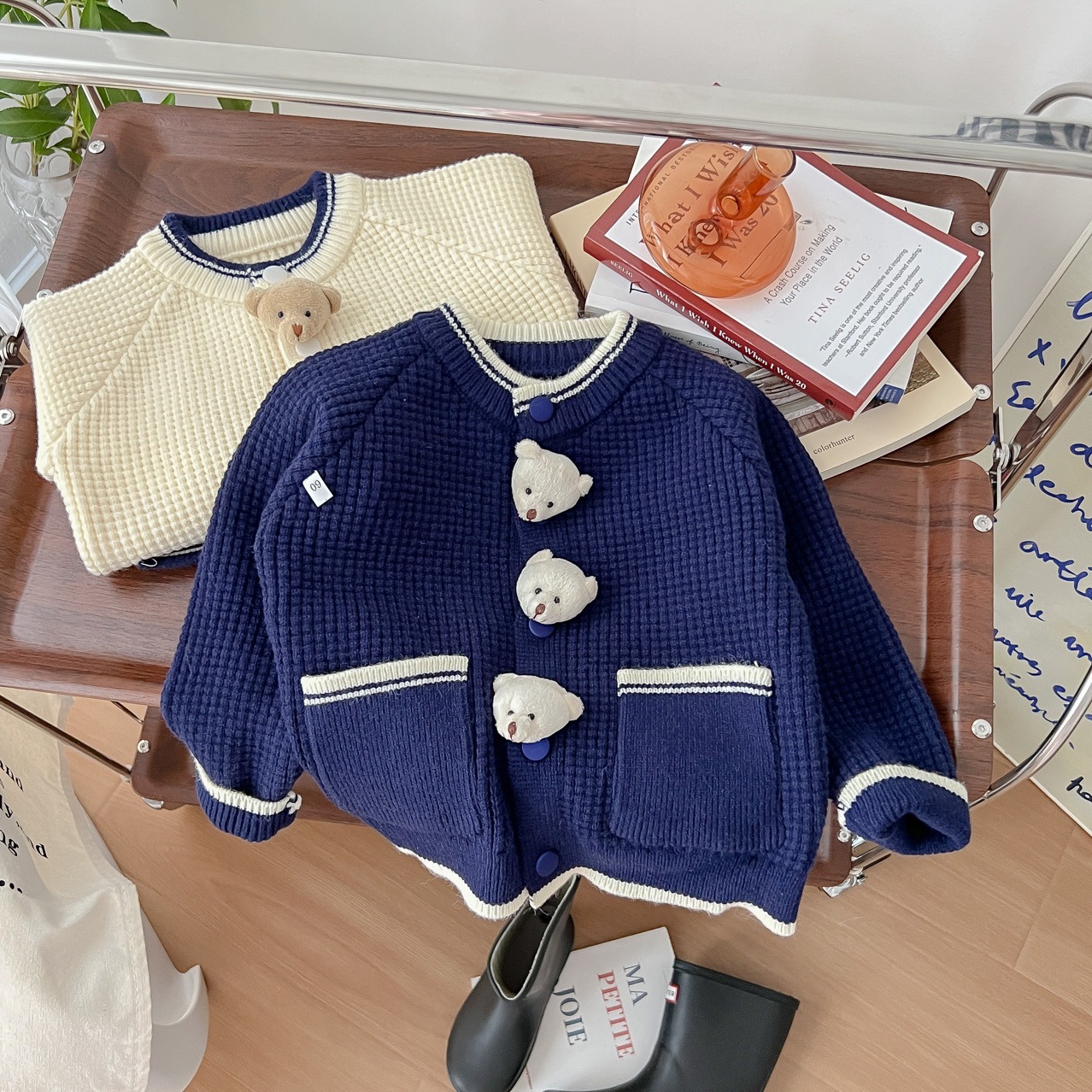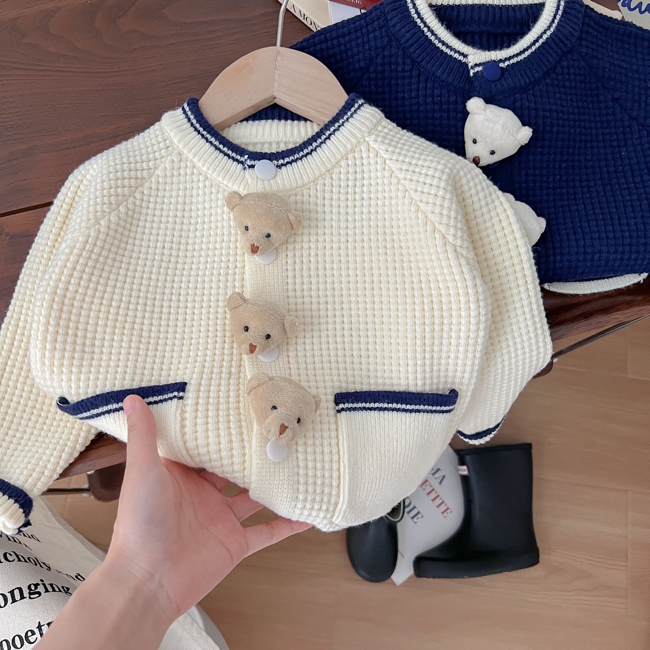 어린이 스웨터 봄 새로운 한국 아기 스웨터 어린이 만화 곰 니트 카디건 코트 남매