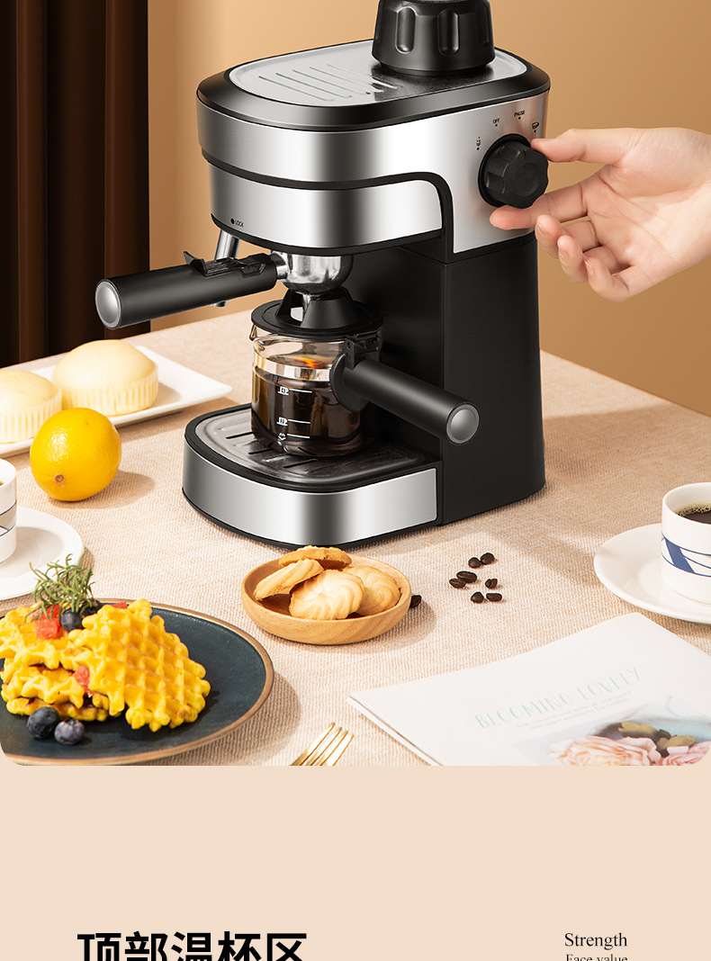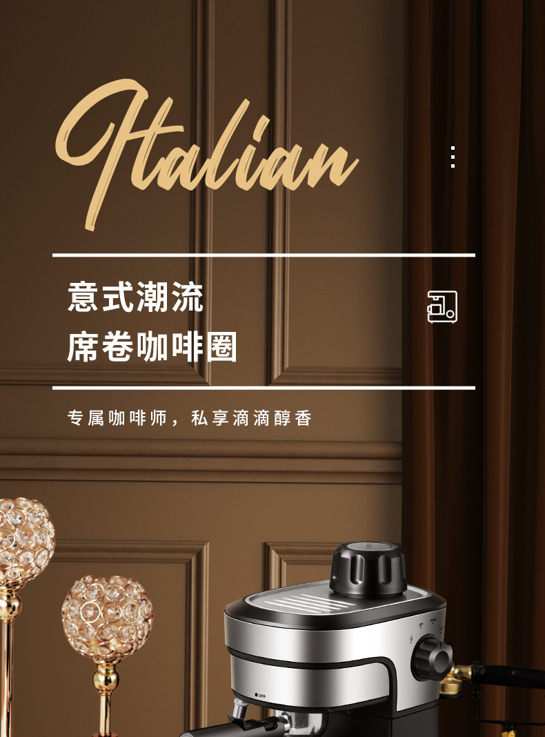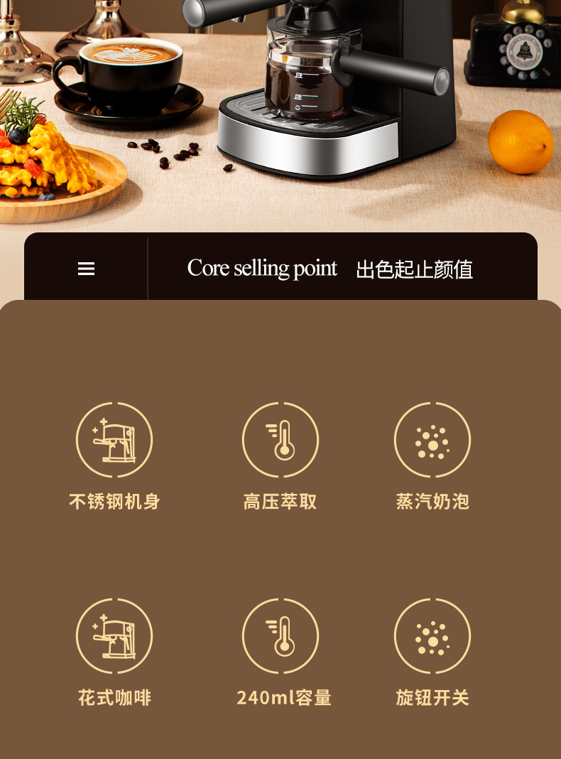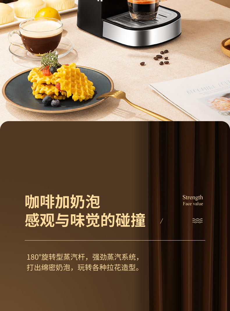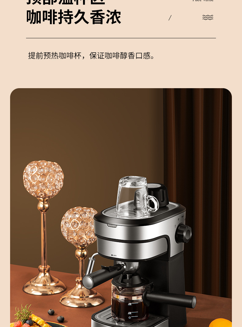 3.5Bar高压泵,可制作浓缩咖啡和卡布奇诺,204ML水箱。