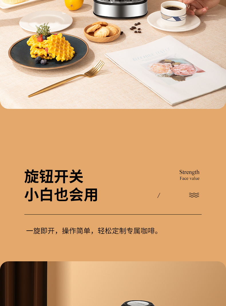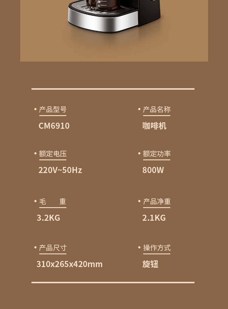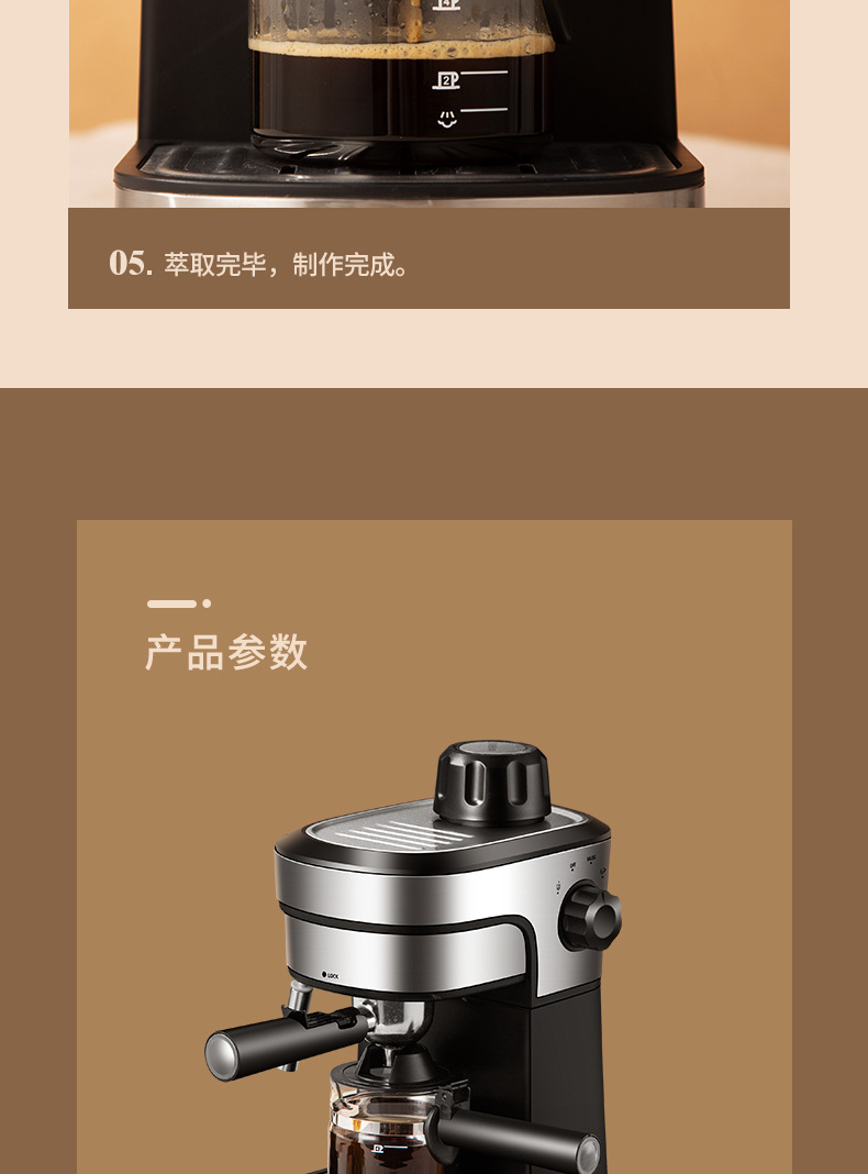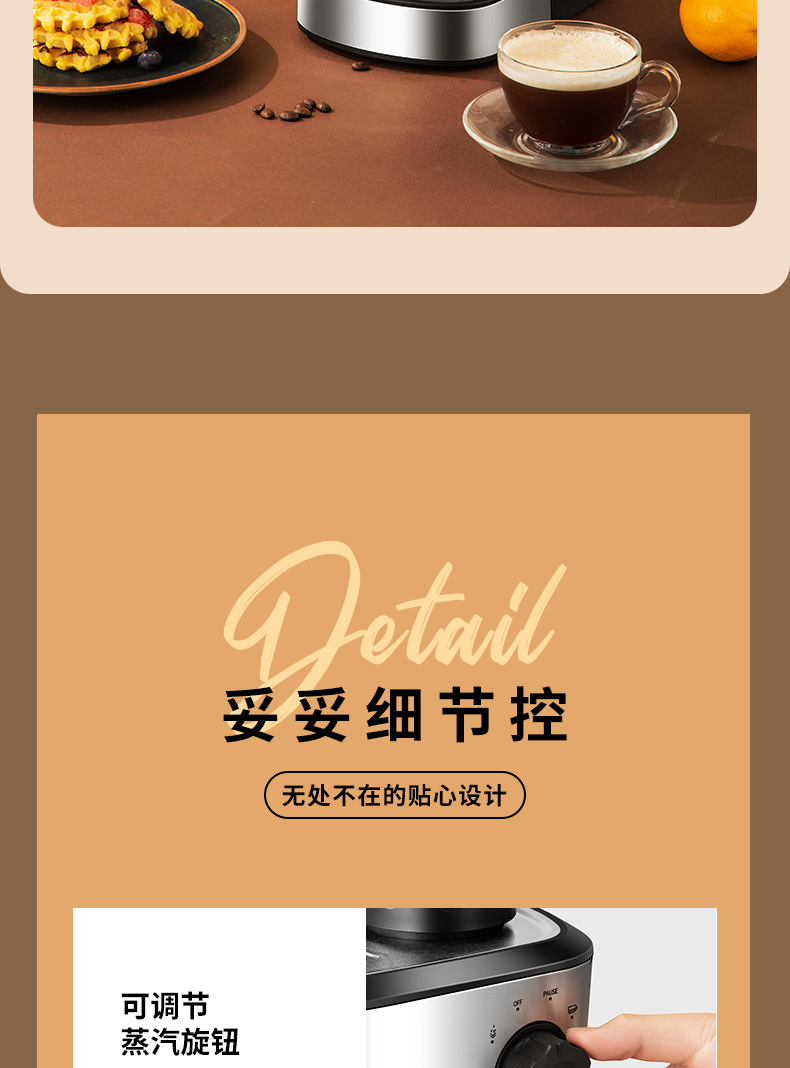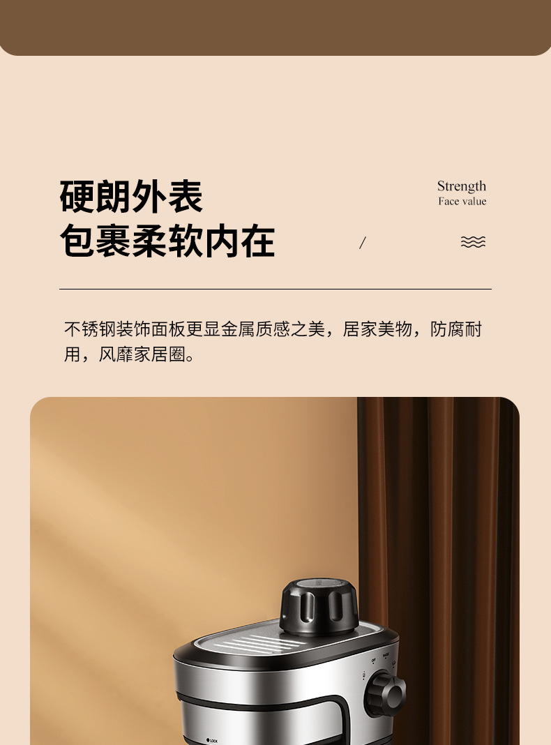 3.5Bar高压泵,可制作浓缩咖啡和卡布奇诺,204ML水箱。