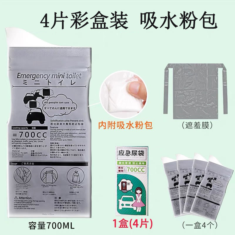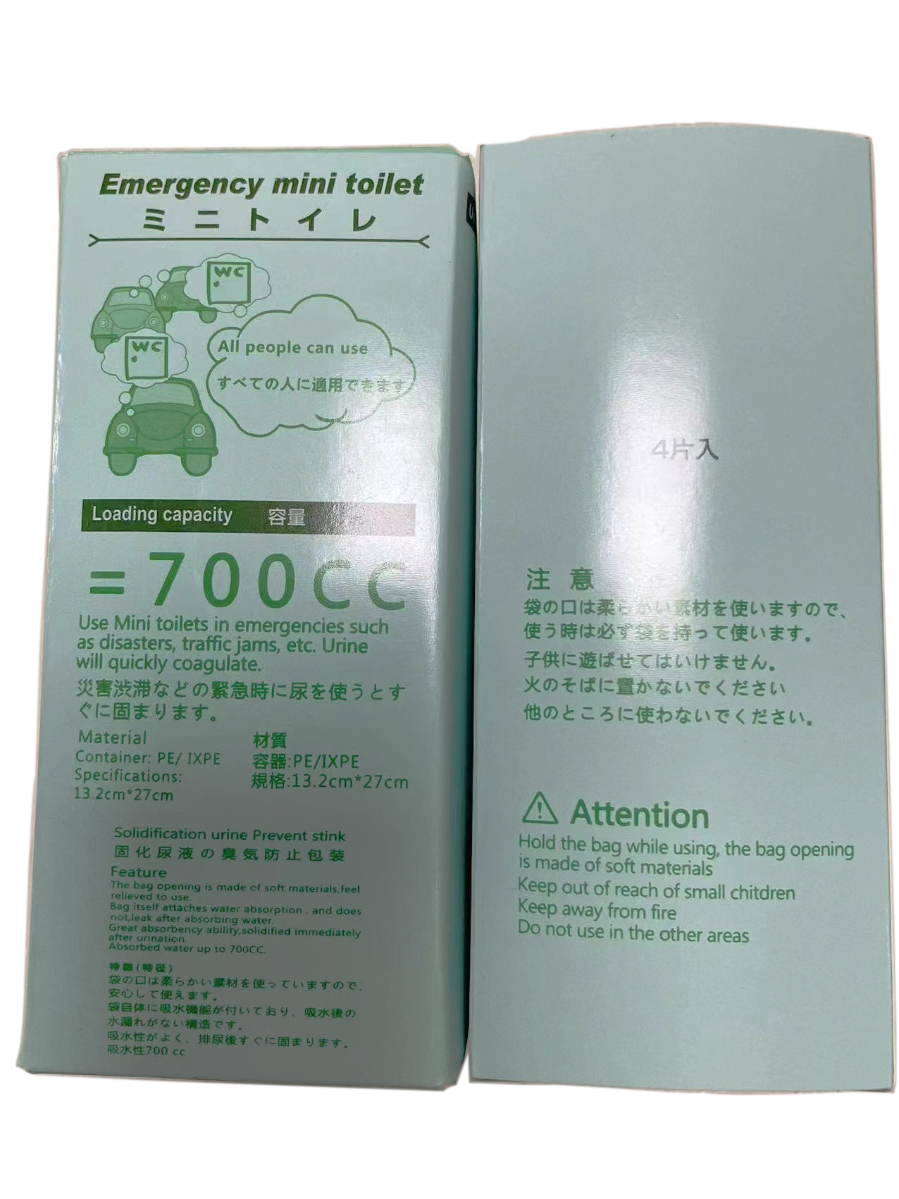 재고 국경 간 수출 비상 소변 가방 일회용 휴대용 700cc 소변 가방 자동차 여행 소변 유물
