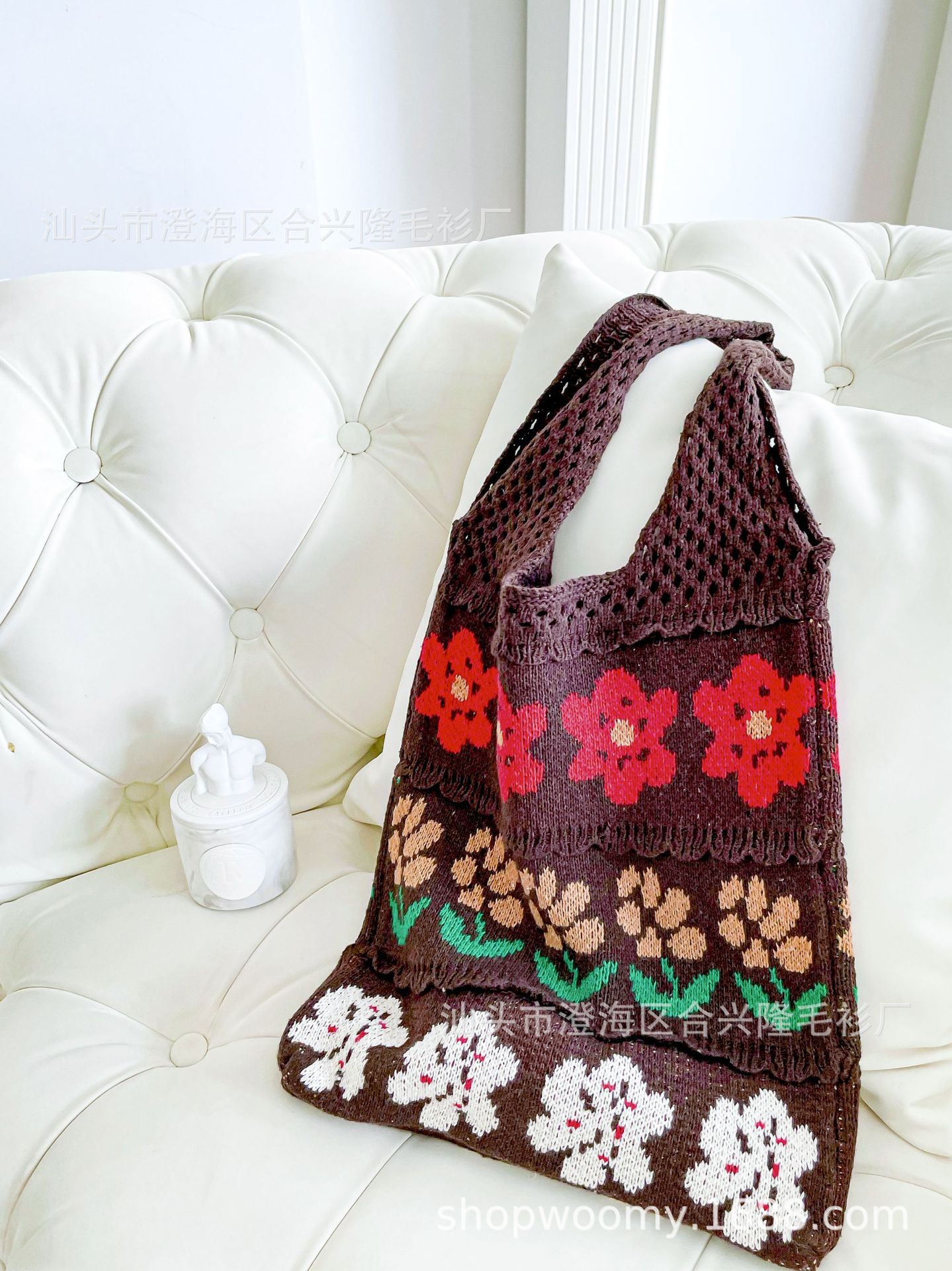 아마존 이베이 수제 짠 간단한 복고풍 중공 니트 핸드 숄더 백 플라워 백 올 매치 비치 백