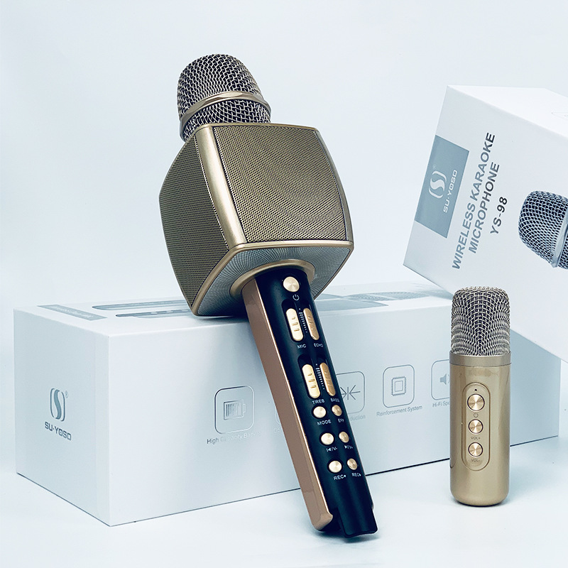 YS-98 새로운 마이크 마이크 스피커 통합 라이브 홈 휴대 전화 노래방 무선 블루투스 노래 유물