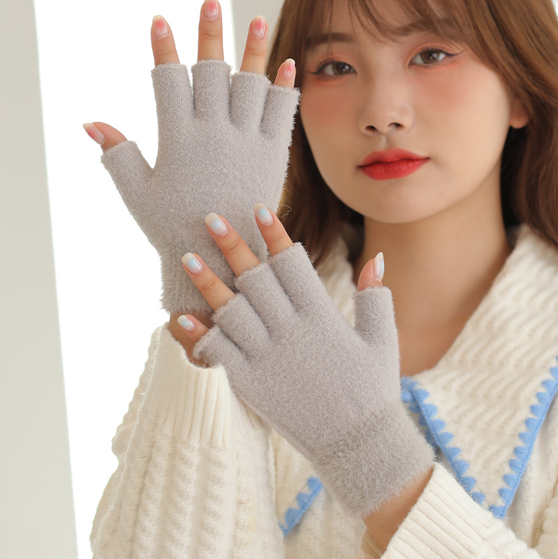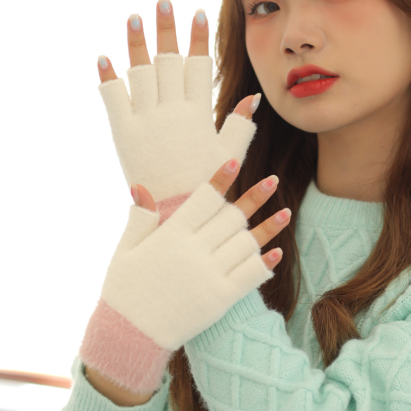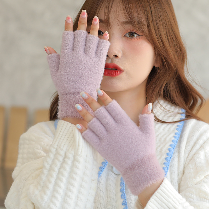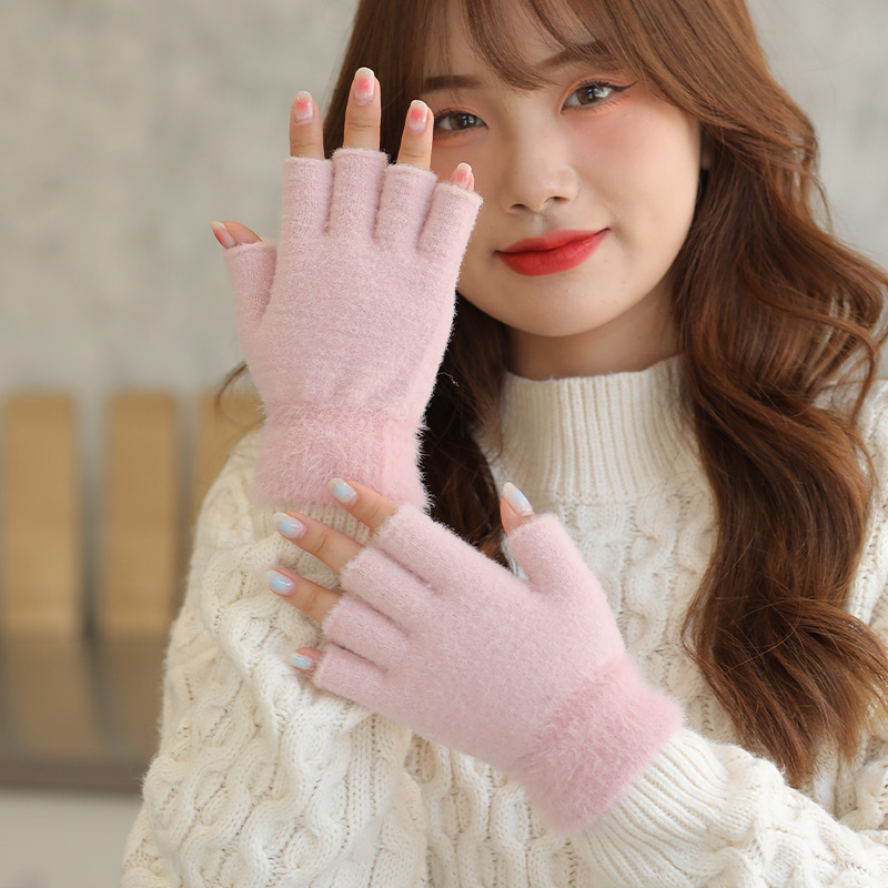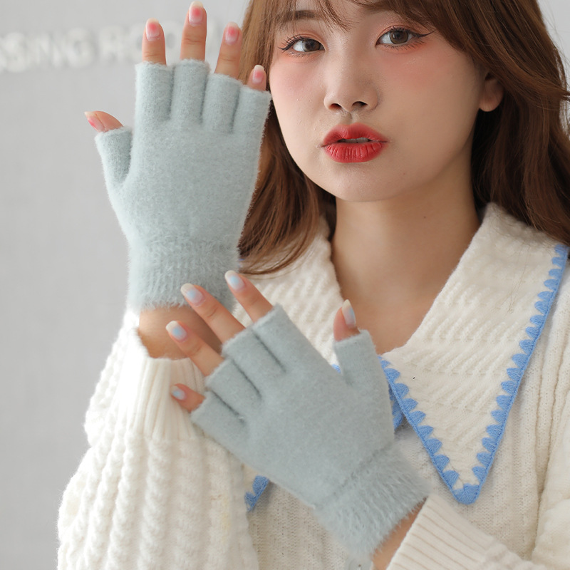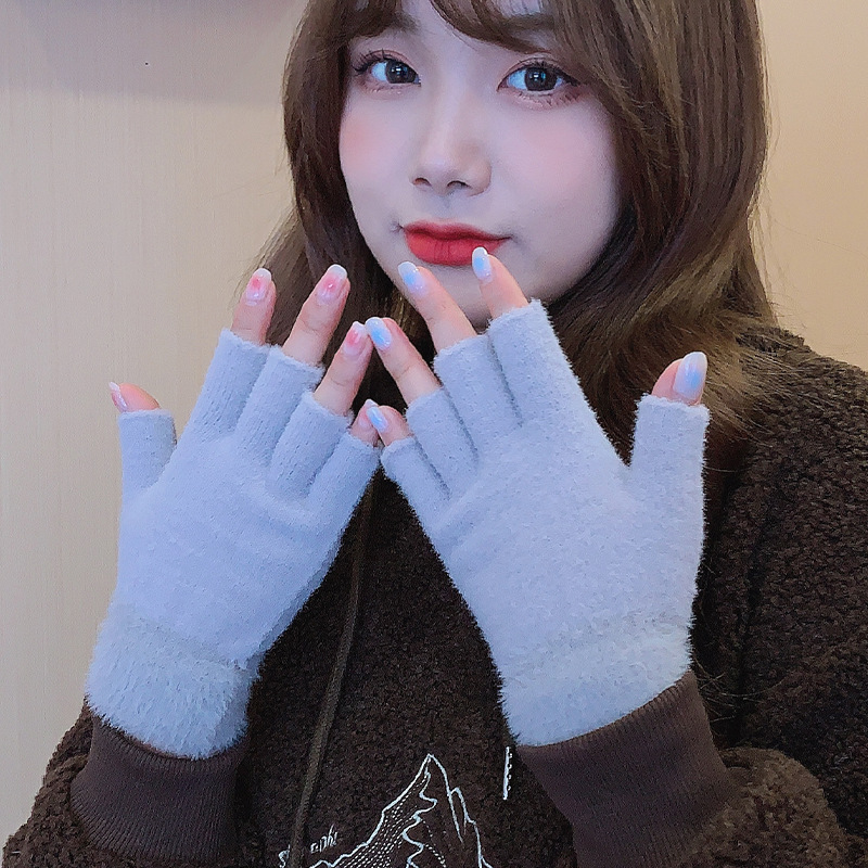 가을과 겨울 손가락 학생 장갑 한국 단색 양모 장갑 손가락 새는 면 장갑 겨울 따뜻한 양모 장갑 여성용스토어 가기