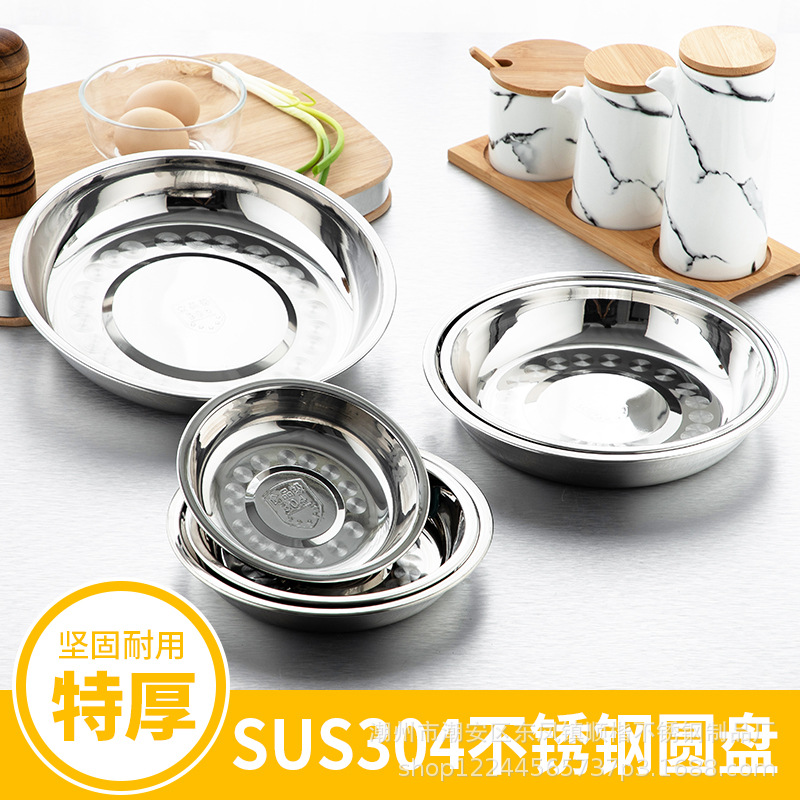 여분의 두꺼운 304 스테인레스 스틸 디스크는 심화 디스크 가정 요리 과일 플레이트 바베큐 플레이트 식당 라운드 플레이트스토어 가기