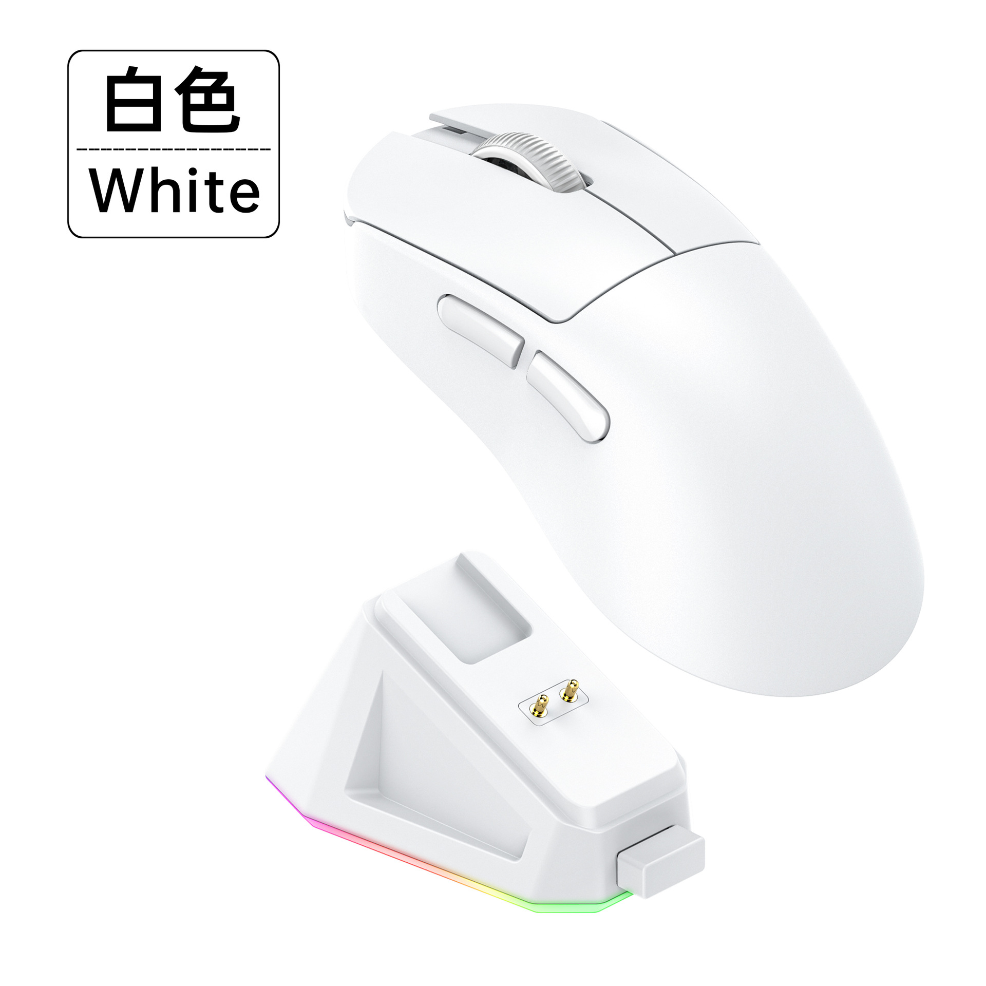 产品特色:经典右手型舒适握感,鼠标加RGB充电底座,轻量化有线/2.4G/蓝牙三模鼠标,RGB灯效可调节或关闭,光电芯片原相PAW3311芯片,高性能可靠稳定性泰凌威68240主控,最高24000dpi,左右键环宇2000万次微动,丰实卫其编码器,内置500mAh聚合物电池带NTC保护,有线/2.4G模式支持自定义可编程,配备防滑防汗精致防滑贴,舒适握感,电竞游戏.商务办公兼容匹配~