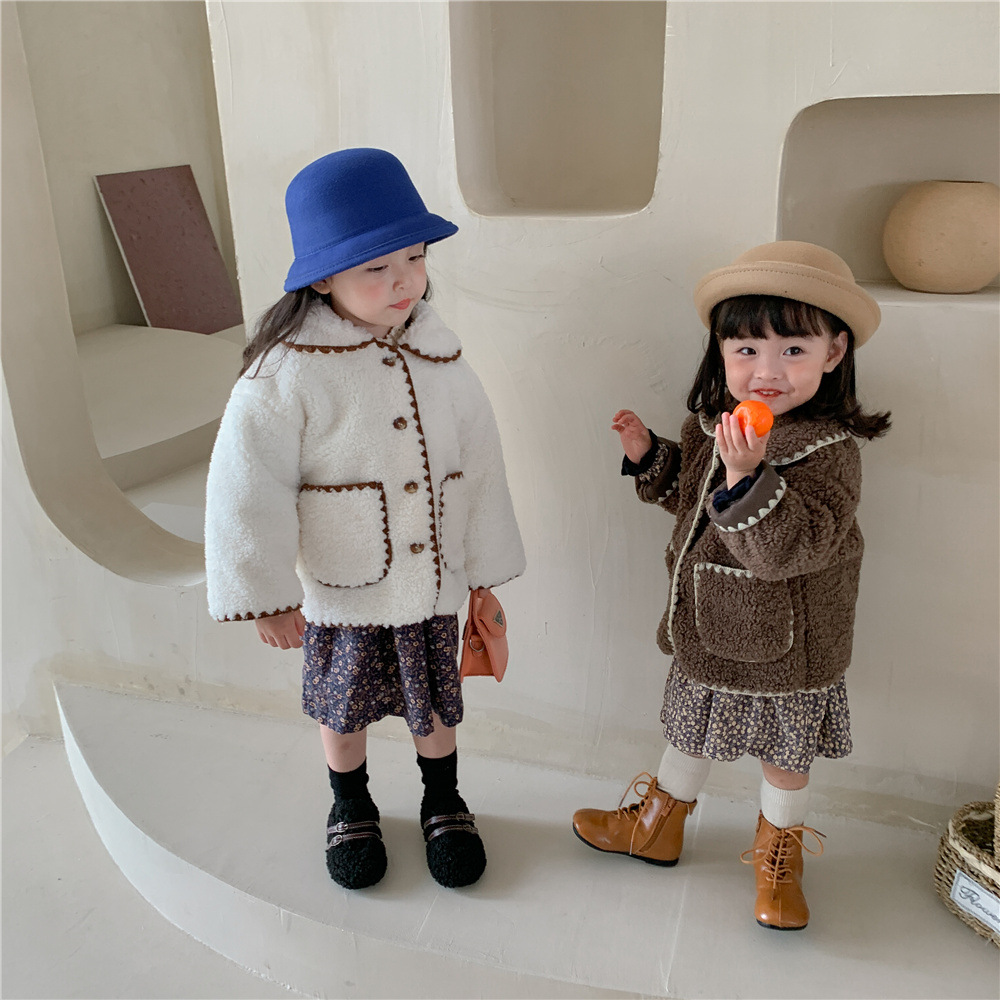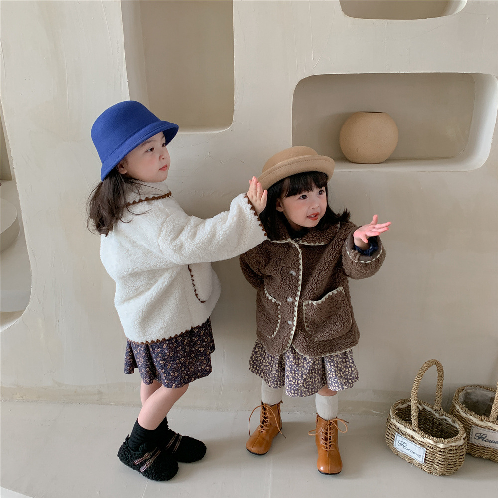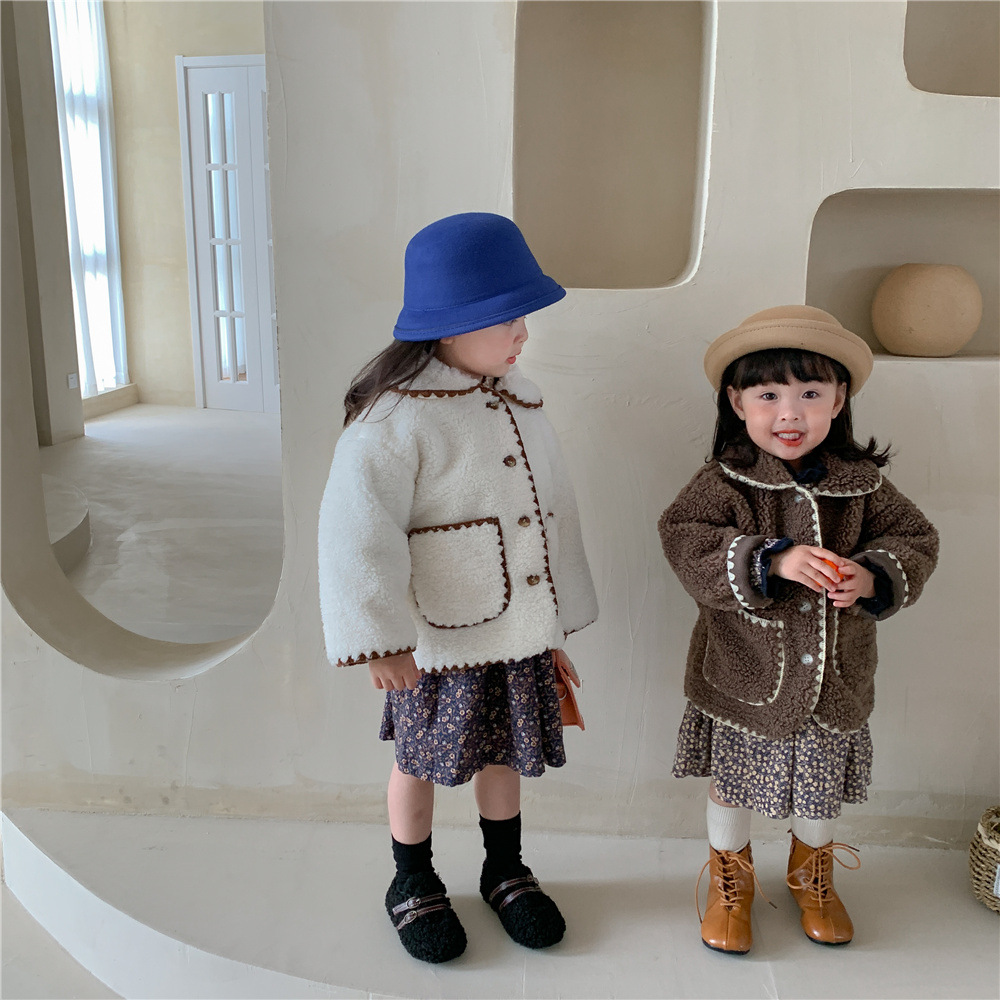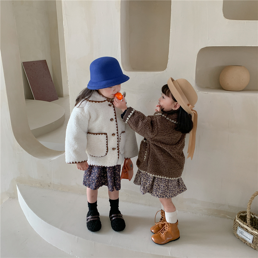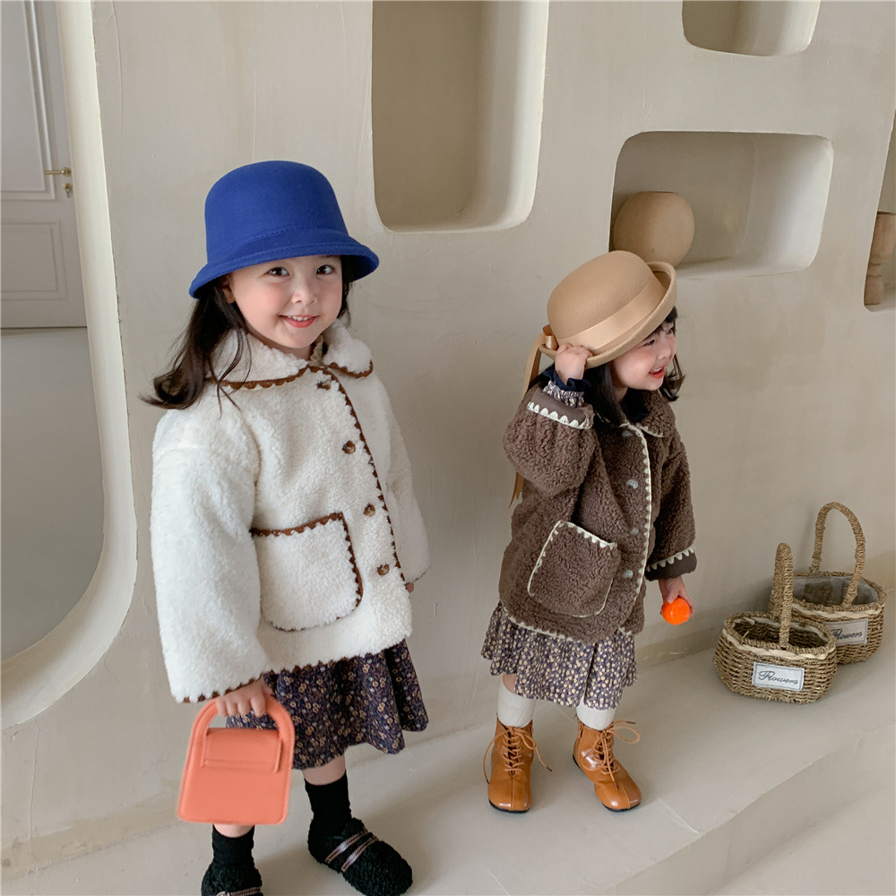 여아 코트 2022 가을과 겨울 한국 아동복 아기 모직 스웨터 싱글 브레스트 소녀의 한국식 샤넬 스타일 코트스토어 가기