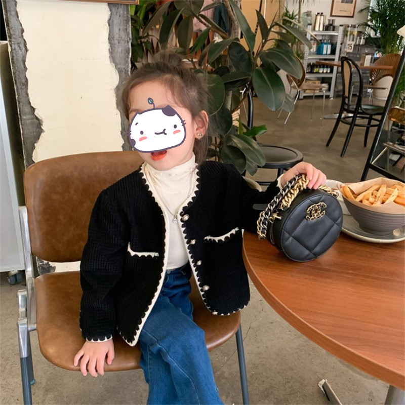 여아 한국 스타일 샤넬 스타일 코트 2023 가을 의류 새로운 스타일 아기 소녀의 세련된 가디건 어린이 최고 인터넷 연예인 가을 의류스토어 가기