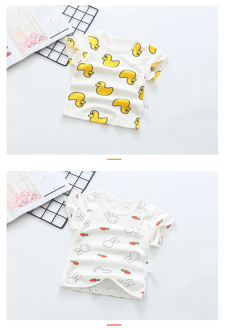도매 반팔 티셔츠 여름 아기 면화 탑 남자 만화 반 소매 아기 옷 얇은 여름 패션