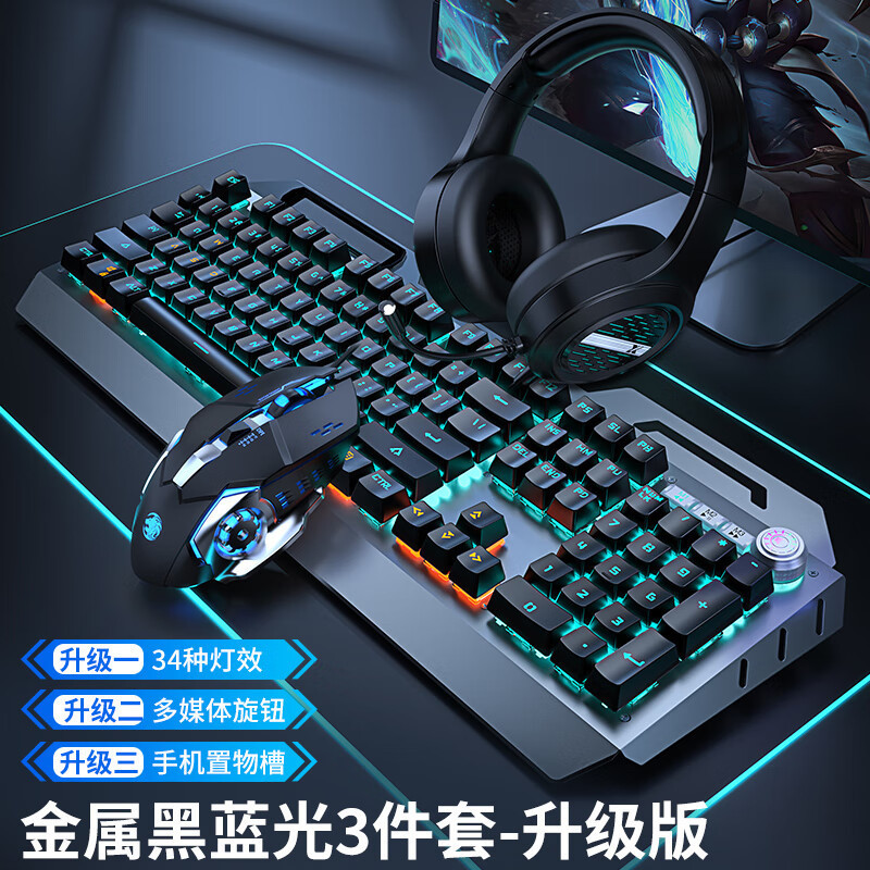 • 유선 실버-[아이스 블루 레드 축] + 유선 마우스 + 헤드셋