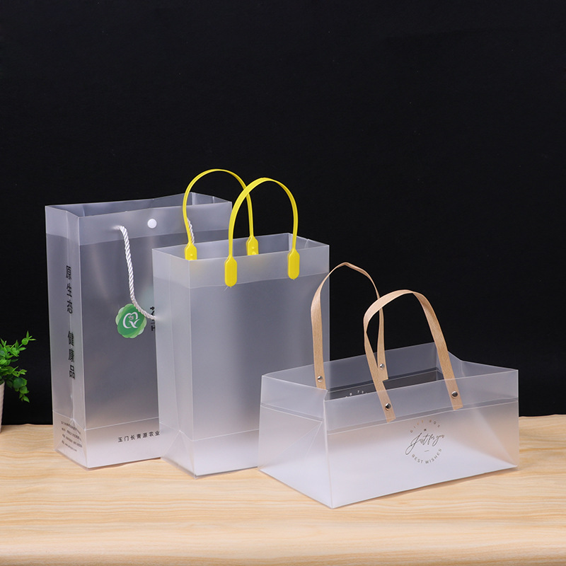 맞춤형 젖빛 투명 플라스틱 핸드백 PVC 선물 포장 가방 PP 의류 쇼핑백 무지 로고 커스텀