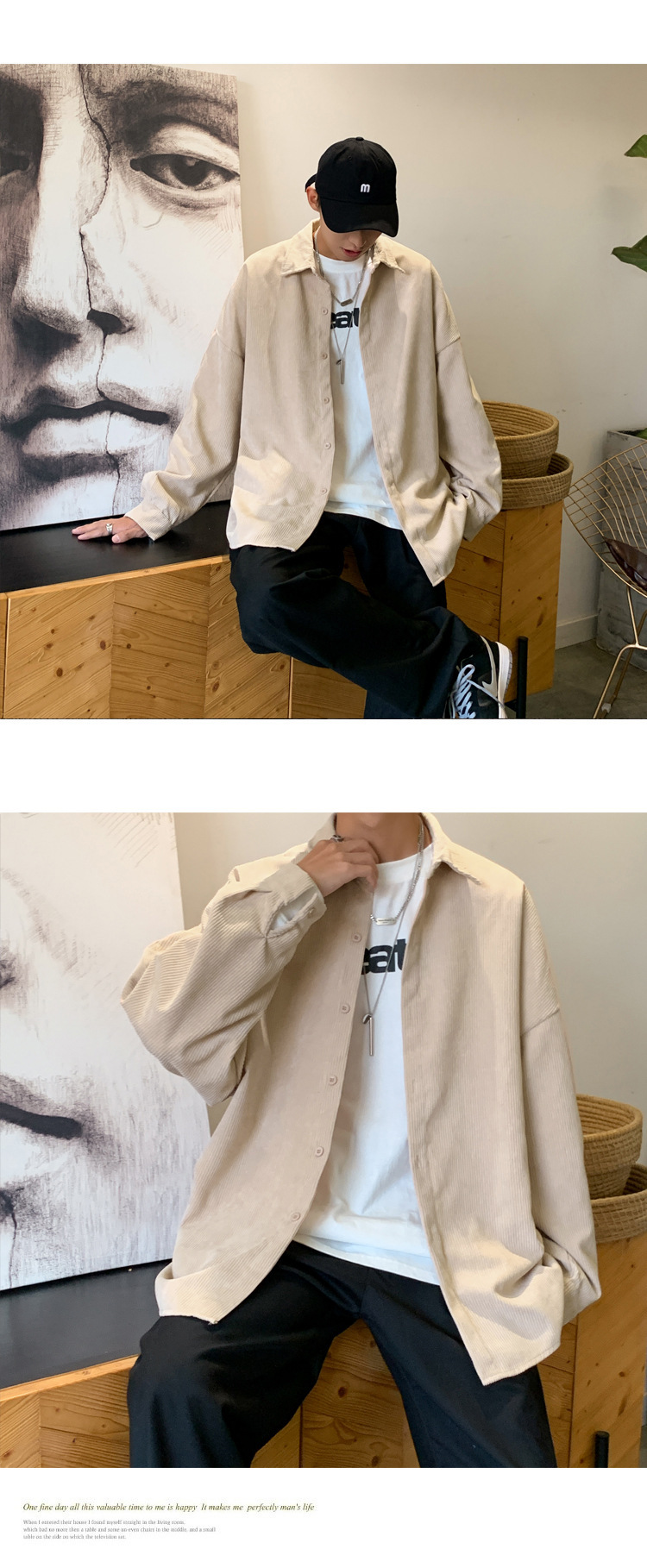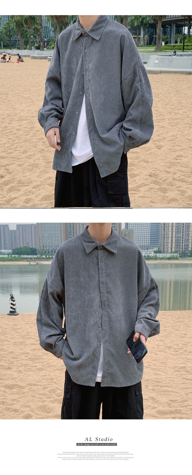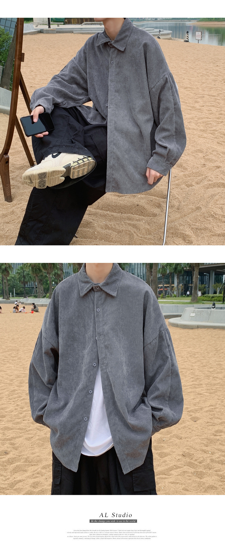 2023 가을 남자 셔츠 캐주얼 한국 스타일 더피 잘 생긴 코듀로이 재킷 인스 타 그램 스타일 유행 봄 긴 소매 셔츠스토어 가기