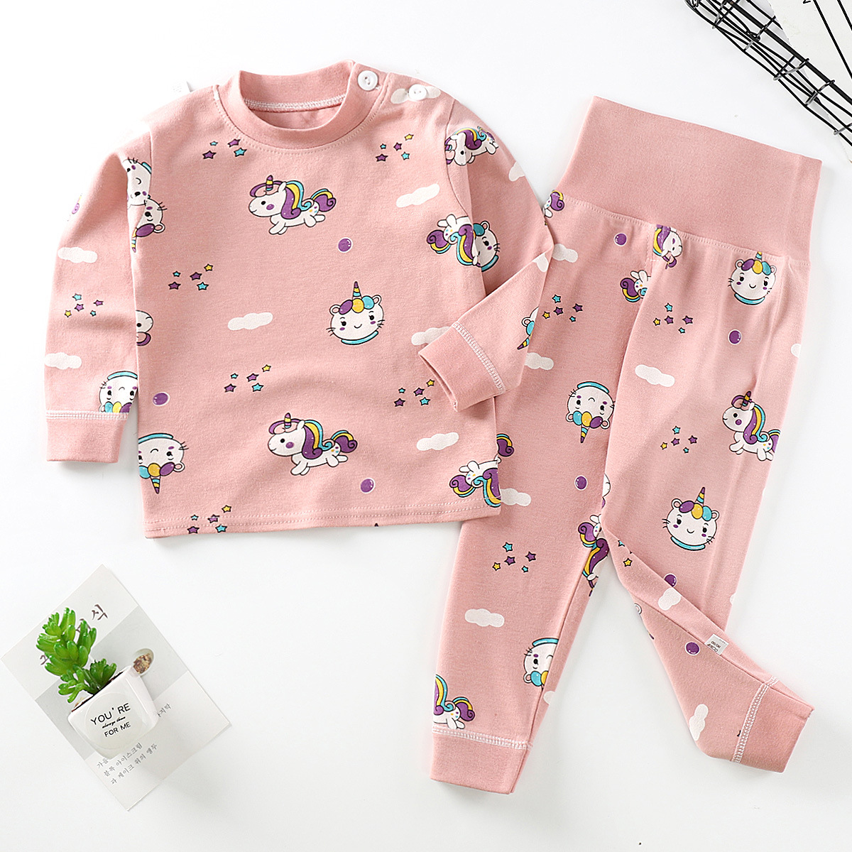 아기의 가을 옷 긴 바지 세트 순면 아기 옷 봄과 가을 긴 소매 속옷 높은 허리 배 보호 남성과 여성의 어린이 분할스토어 가기