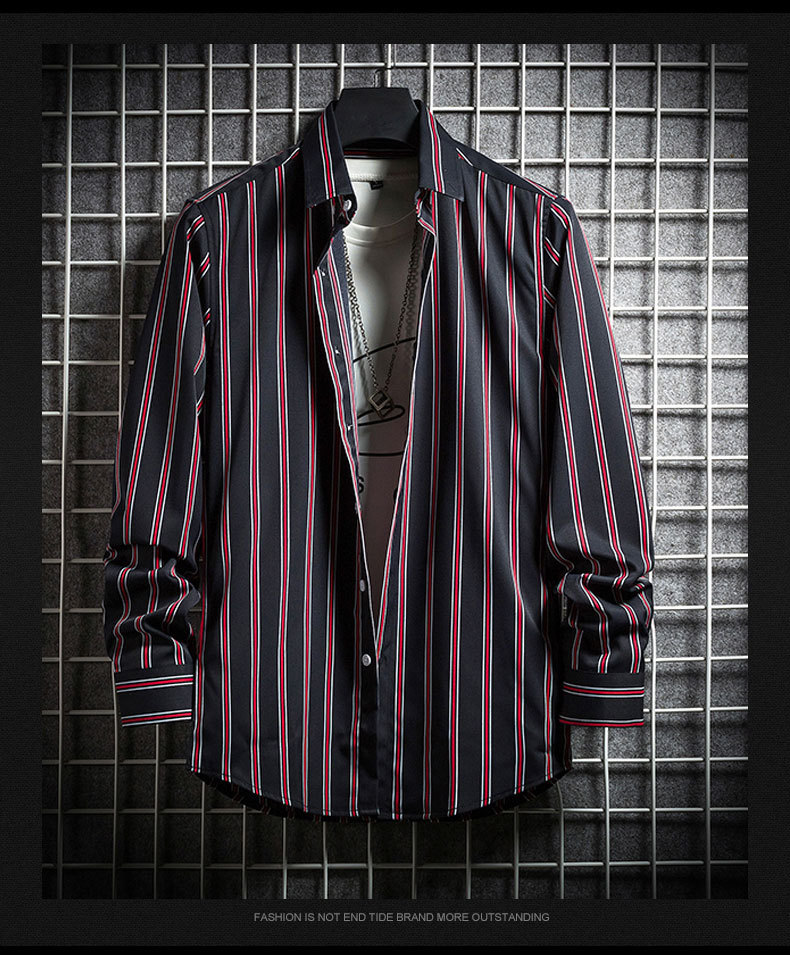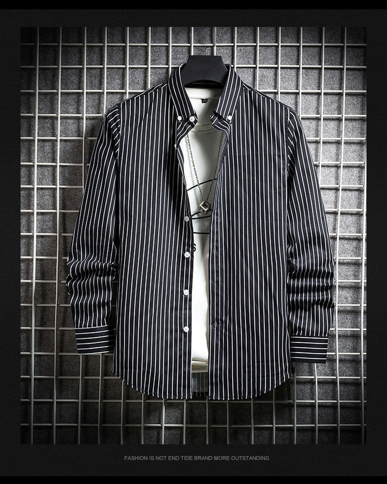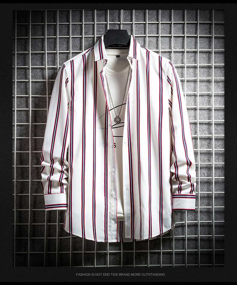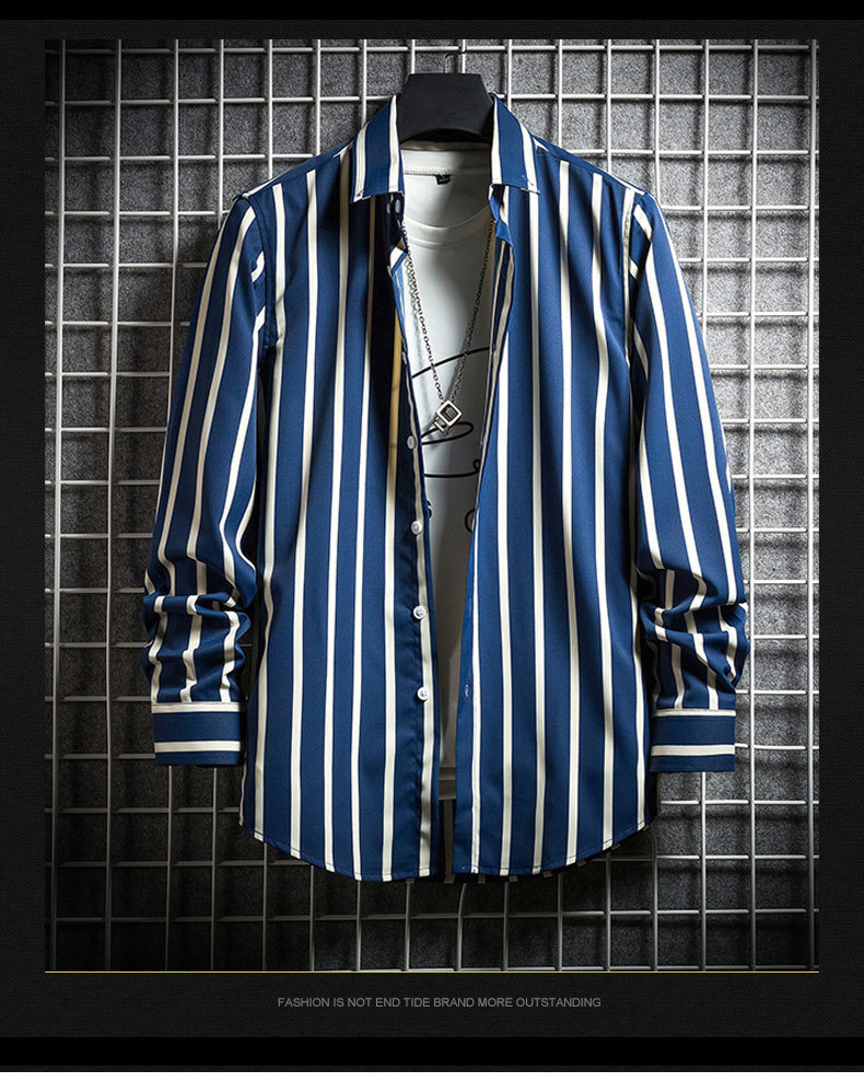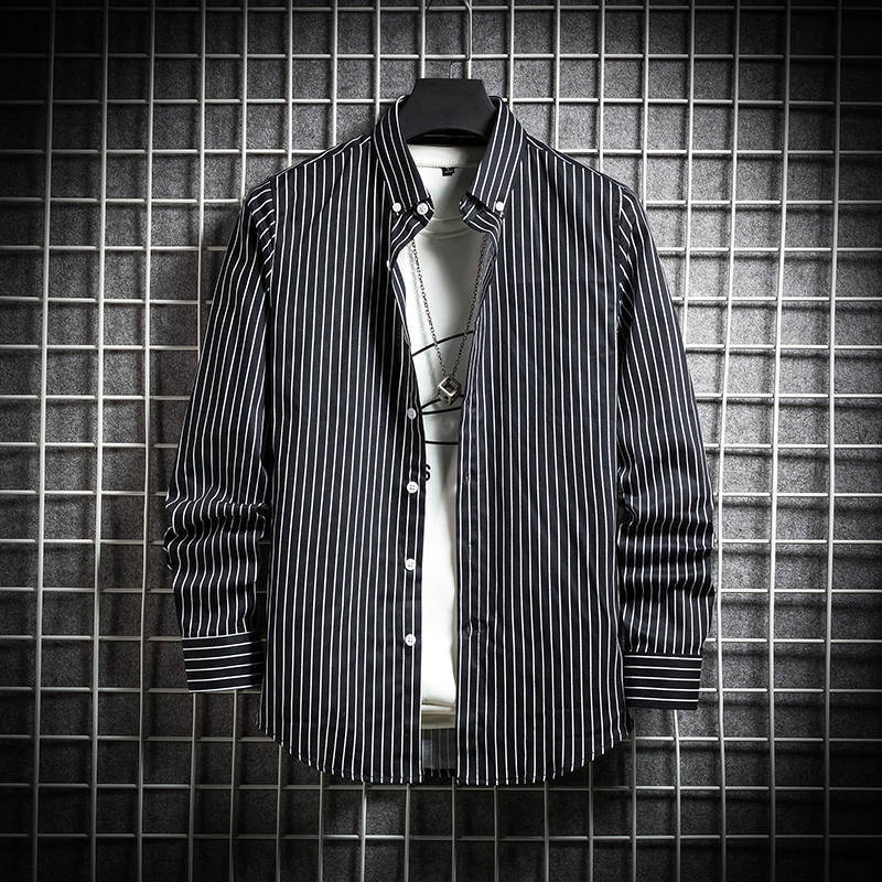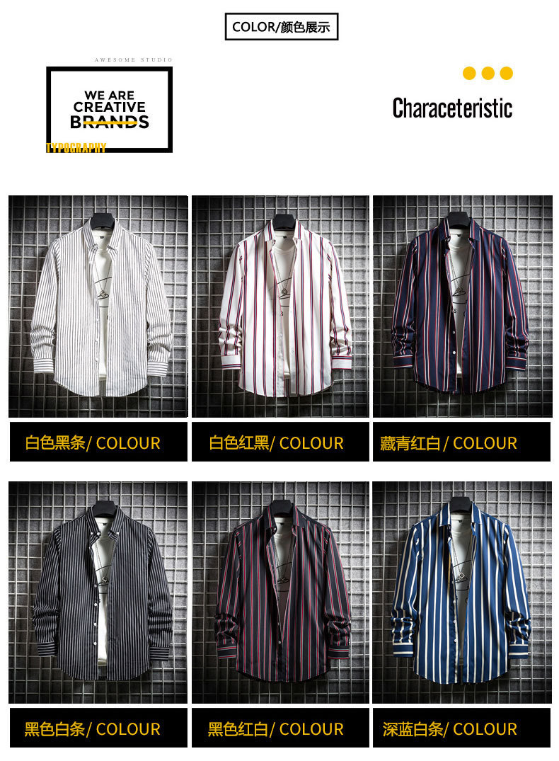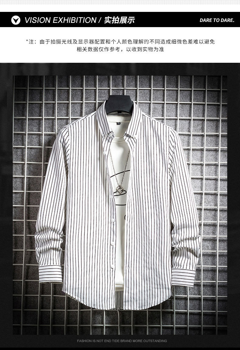 홍콩 스타일 공장 슬리브 셔츠 남성용 유행 모든 매치 느슨한 스트라이프 셔츠 봄과 가을 유행 브랜드 한국 긴 소매 재킷