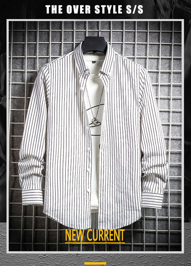 홍콩 스타일 공장 슬리브 셔츠 남성용 유행 모든 매치 느슨한 스트라이프 셔츠 봄과 가을 유행 브랜드 한국 긴 소매 재킷스토어 가기